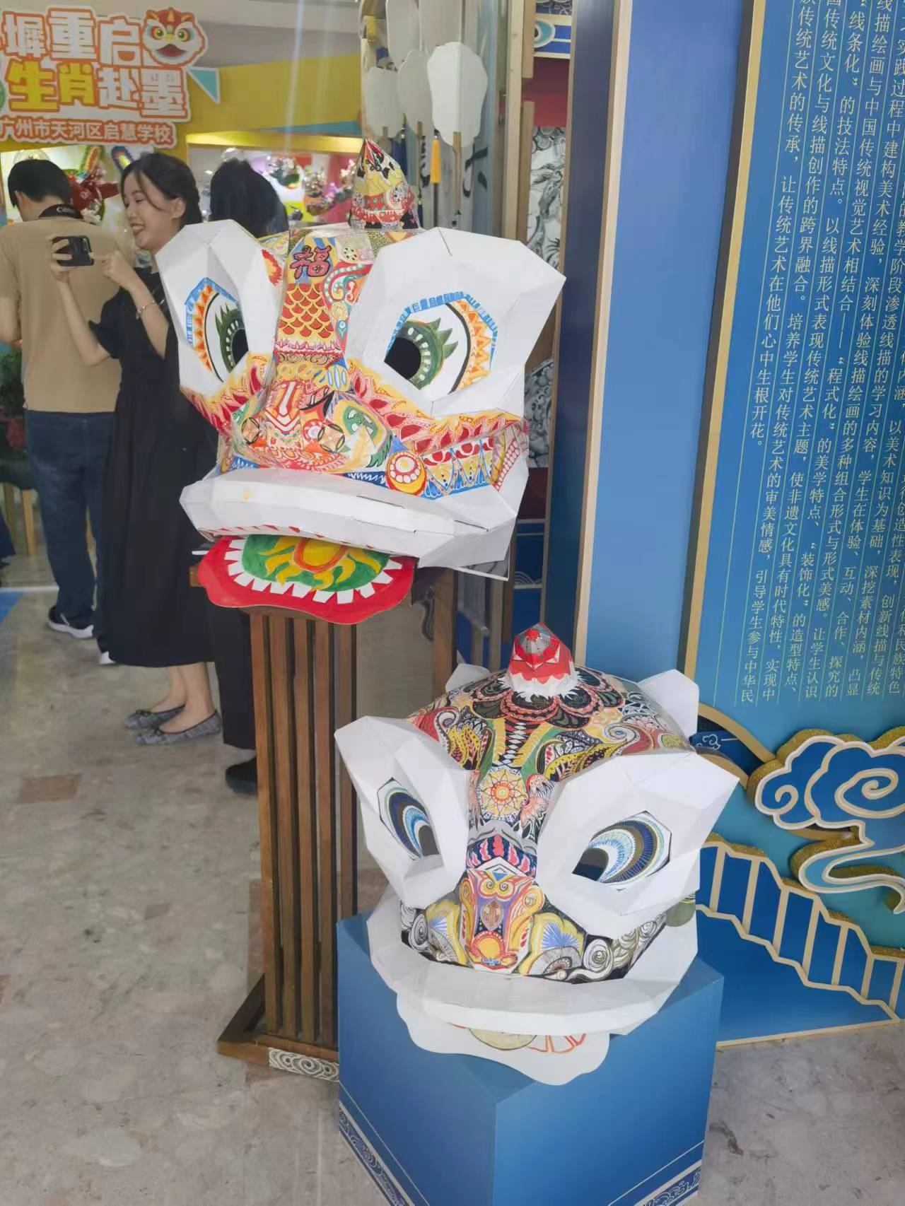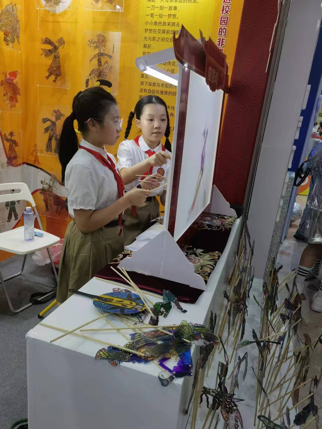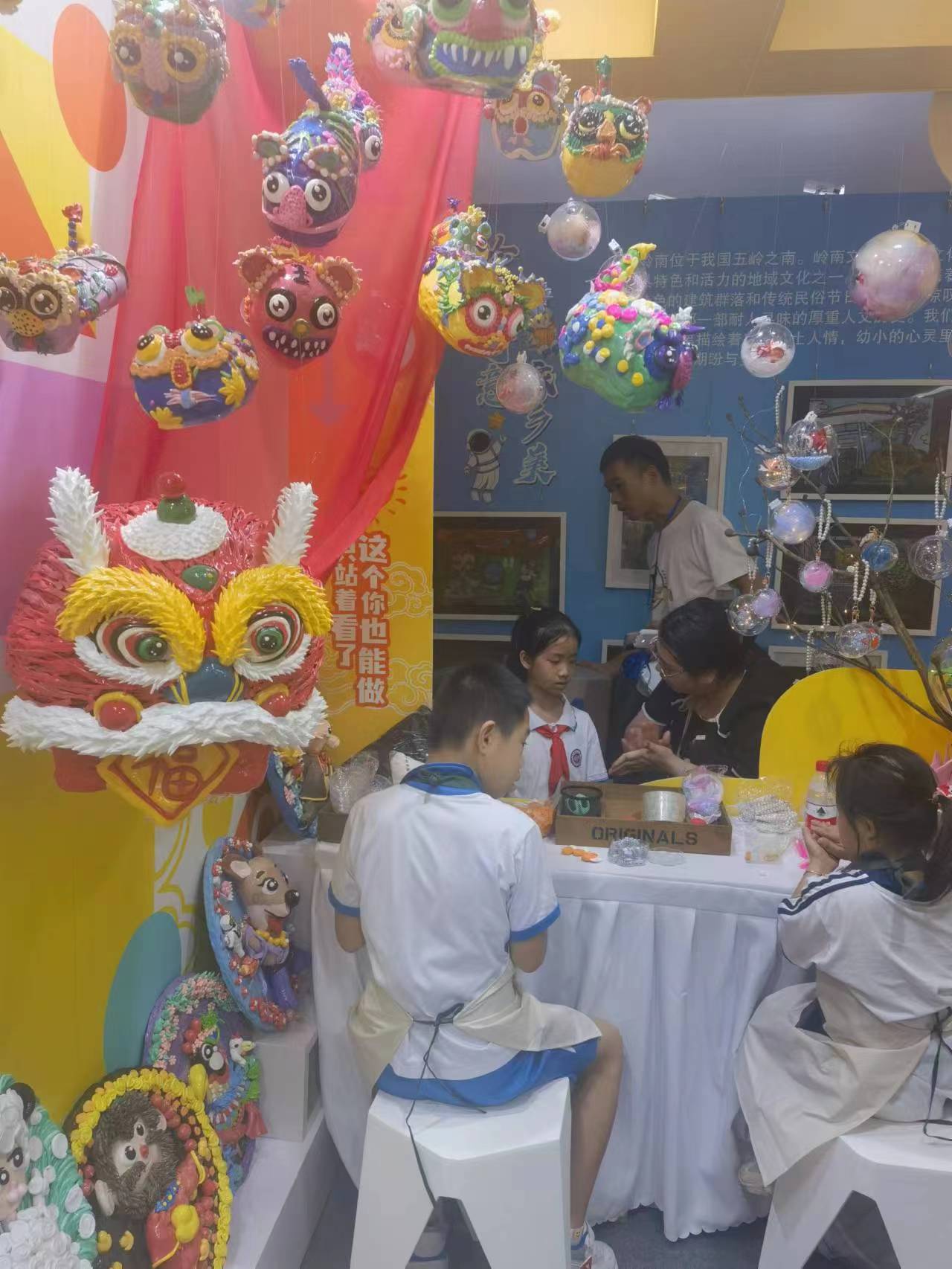记者在现场看到各学校的以各种非遗为主题的成果展示摊位,摊位里的作品水平非常高,在摊位设计上也都别出心裁,有非常多的装置和交互环节,可以供观众体验以及更全面的了解非遗文化和学校在这一方面的研学成果。此外让人感到欣喜的是,现场的小学的孩子都展现了非常高的导览水平,主动给观众介绍摊位里的作品以及老师教授的内容,都如数家珍,并且通过这样的展示和讲解,同学们非常大方自信的展现了自身和学校的风采,体现了各校美育的杰出成果。