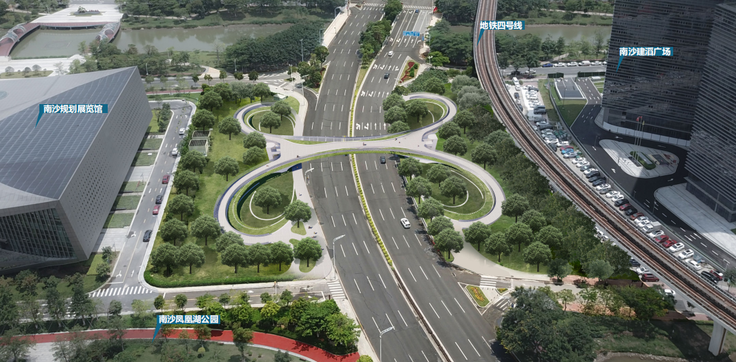 项目设计突出以人为本,以绿色交通为主,在规划上避免行人与非机动车的冲突,同时充分保障人群的人身安全,完善天桥的标识导视系统及相关的人性化配套设施,让天桥洋溢“人文关怀”。两座桥均以千纸鹤为设计理念,寓意南沙蓬勃发展,面向世界,翱翔湾区。