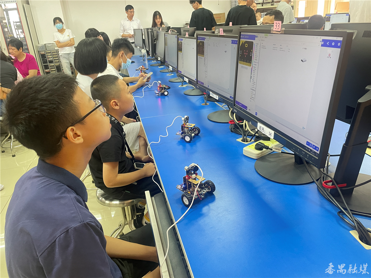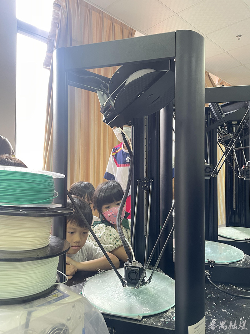 活动中,高校志愿者带领小朋友一起玩游戏,做实验,近距离感受科技的魅力,活动吸引大批青少年踊跃参与。在志愿者的指导下,小朋友参与智能小车编程、探索3D打印技术等科普课程,学习各种科普知识。孩子们一边认真听讲,一边开展实操演示,看到自己编写程序的智能小车成功实现小车的运动,现场都响起欢快的笑声。在3D打印技术展示,当孩子们听着老师演示讲解,近距离观看3D打印机器运作过程及成品,一张张稚嫩的脸上充满好奇。