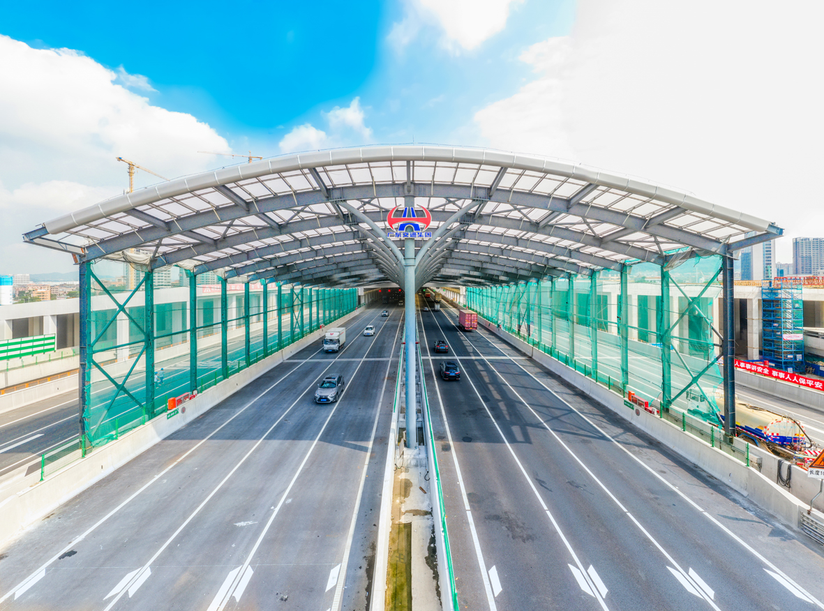 在现场,记者看到主线桥隧道入口处部分完成的隔音罩建筑。据工作人员介绍,隔音罩整体形态现代简洁,屋顶曲线轻微起翘呈现欢迎的姿态,与上盖空中公园整体形象契合。在满足隔音降噪功能同时,通过采用渐变的屋顶采光设计,有效满足出入隧道车辆照明需求,同时削弱光线变化给司机带来的不适,有利于广大司乘人员安全行驶。