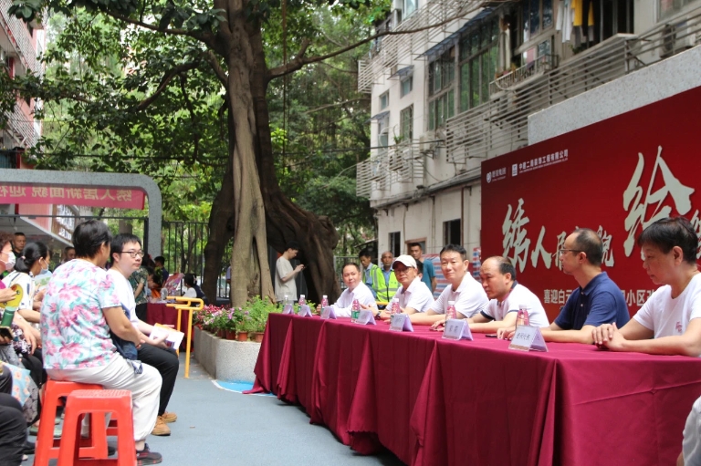 有了优美环境,有了完善设施,有了多元生活业态,谁来管养维护?6月1日,广信小区举办微改造项目亮相暨物业服务进驻宣传仪式,白云区住建局、景泰街道办事处相关负责人、项目专家顾问华南理工大学教授郭谦现场与居民交流,推动社区长效管养。从设计之前就开始全流程介入改造的愿景集团,旗下物业服务公司向街道和社区递交物业进驻意向书,引导居民通过“先尝后买”的方式体验物管服务。