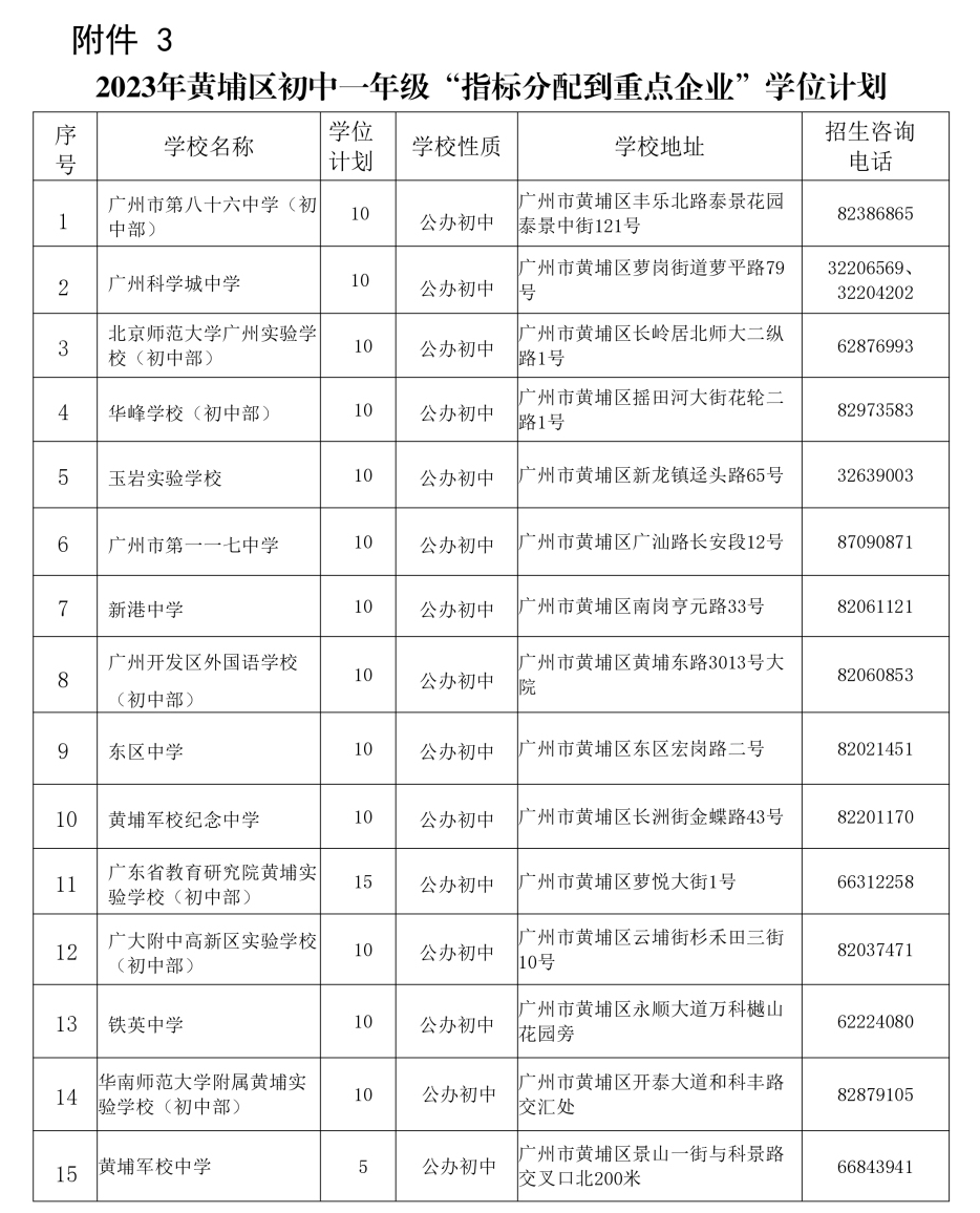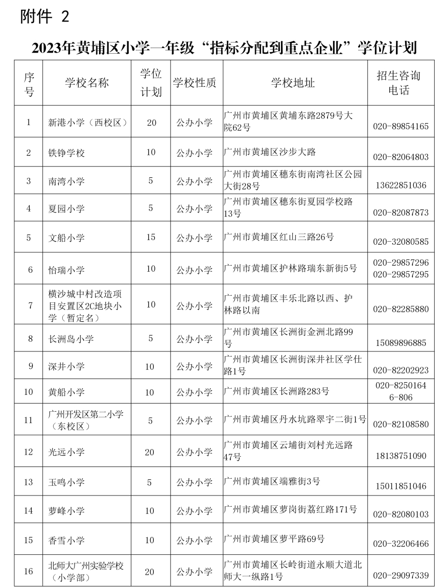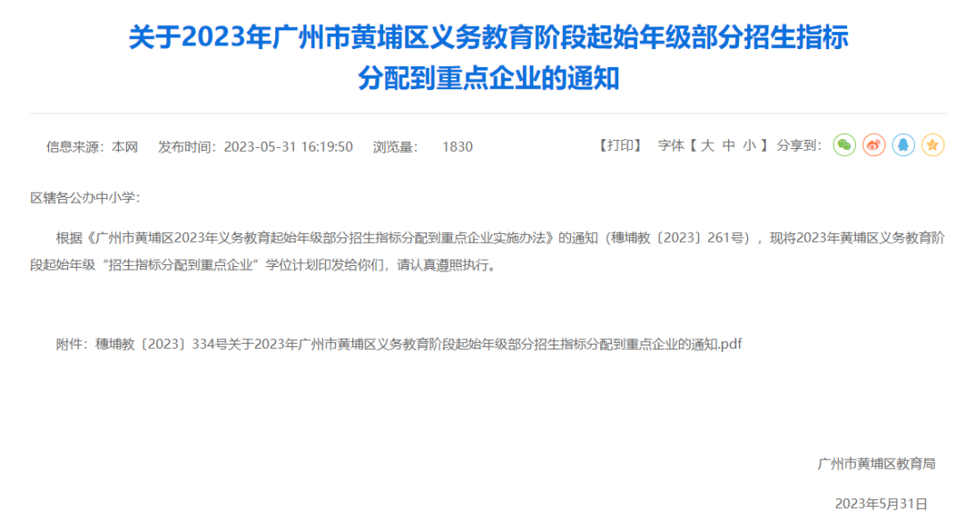 重点企业入学指标分配录取结果将分别于2023年6月7日和6月15日在“广州市黄埔区人民政府 广州开发区管委会”官方网站 通知公告”栏目或“广州黄埔发布”和“广州黄埔教育”微信公众号公布。