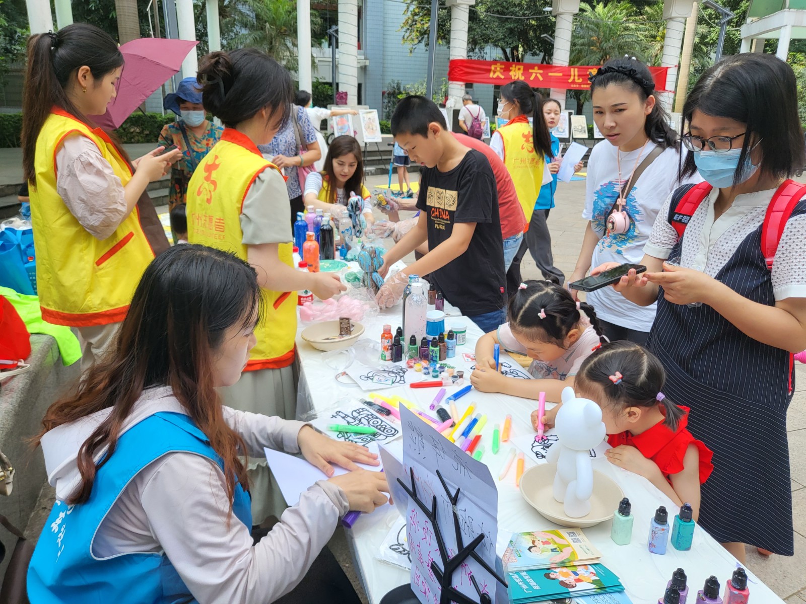 石牌街联合社工服务站、未成年人保护站及穗园社区在该小区青少年文化广场开展“乐善好‘石’ 汇爱六一”主题社区慈善集市。现场的“创意积木”“DIY胶画”“流体熊创作”等游戏摊位前充满欢声笑语,给人们带来丰富的亲子活动体验。而募集到的公益基金丰富了“善汇石牌”社区基金,构建社区公益新动态。此外,街道未保站设置咨询台,普及未成年人保护相关法律法规和自我保护知识。