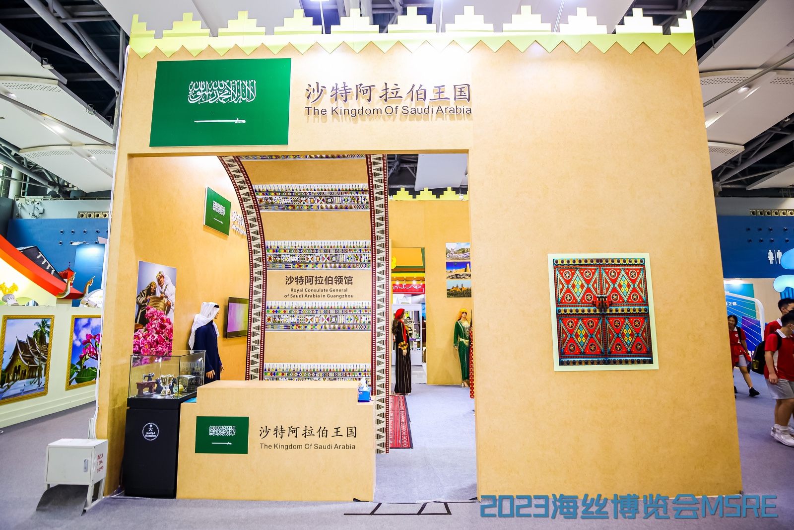 展会现场呈现“一展台一国家一特色”,异域风情浓厚,让广大观众形成沉浸式逛展体验。在沙特阿拉伯展台上,充满沙特阿拉伯特色的民族服装和金光闪闪的服装配饰分外抢眼,沙特驻广州总领事阿卜杜拉·本·欧比耶说,“非常高兴能向大家展示沙特阿拉伯的历史和文化遗产,这几天在现场结交了很多国际朋友,未来我们可以在能源合作、研究创新、产业项目和金融合作方面建立更深层次的联系。”
