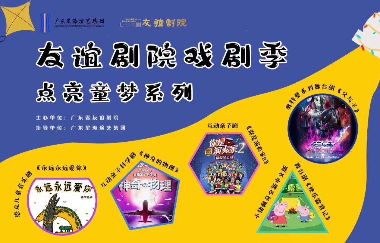 在广东星海演艺集团的指导下,2023友谊剧院戏剧季“点亮童梦”系列优化升级、焕新出发,集结众多优质亲子演出,以精彩演出、互动游戏、现场实验等多种形式,让孩子在玩乐中展现天赋、拓宽眼界、放飞想象,感受戏剧魅力的同时,与家人乐享美妙亲子时光。