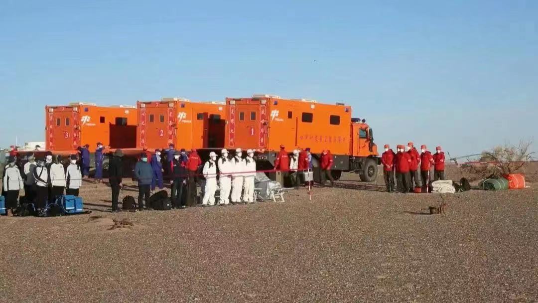 6时33分,神舟十五号载人飞船返回舱在东风着陆场成功着陆。试验队迅速到达返回舱落点,第一时间对舱体进行状态检查,确认舱外无危险源后,打开舱门。之后,对舱内状态进行检查。航天员出舱后,试验队迅速执行各项操作步骤,对返回舱进行处置。