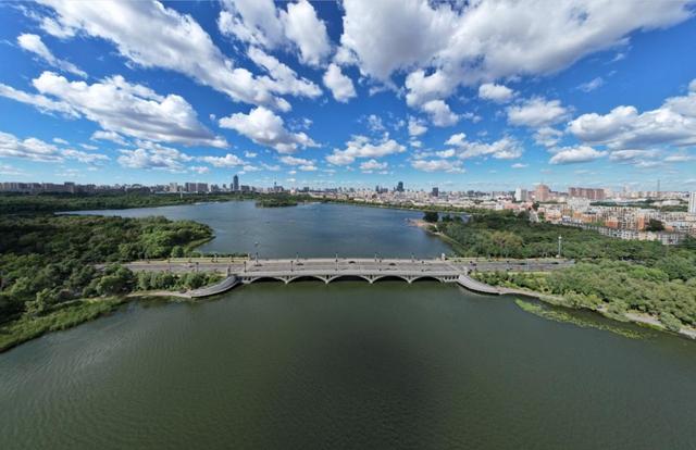 绽放长春之一,“长春十大文化公园”——南湖公园呈现出一派碧水蓝天的美好景象。