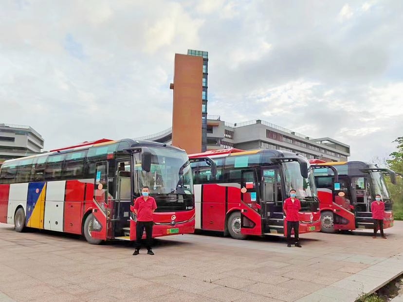 同时,高考期间,广州巴士集团将选派78台车质车况最优的大巴组成送考车队,为广东实验中学越秀学校、番禺洛城中学、祈福英语实验学校、增城郑中均中学、从化南洋中学、从化二中、佛山罗村高级中学等11所学校的高考学生提供“点对点”乘车服务。记者了解到,广州巴士集团属下从化分公司5月29日就成立了高考用车保障小组,遴选人员和车辆、开展培训、制定科学周密的保障方案等,为此次送考做好充分准备。为了确保考生们准时准点到达考场,每台送考大巴上都安排了党员、团员志愿者开展乘车服务,全力为考生保驾护航;此外,车上还配备了铅笔、橡皮擦等文具,供考生应急使用。
