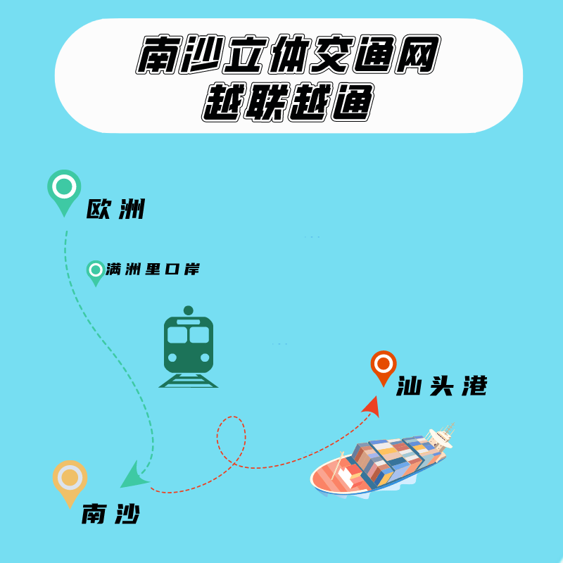 “广州南沙港-汕头港”支线的开通是广州港深入贯彻落实广东省“一核一带一区”区域发展新格局,强化粤港澳大湾区与粤东地区经贸往来的重要举措。“南沙港-汕头港”支线的密度为一周三班,通过国际中转的模式实现南沙港区与汕头港的互联互通。