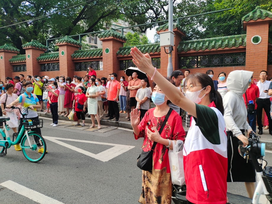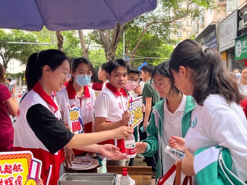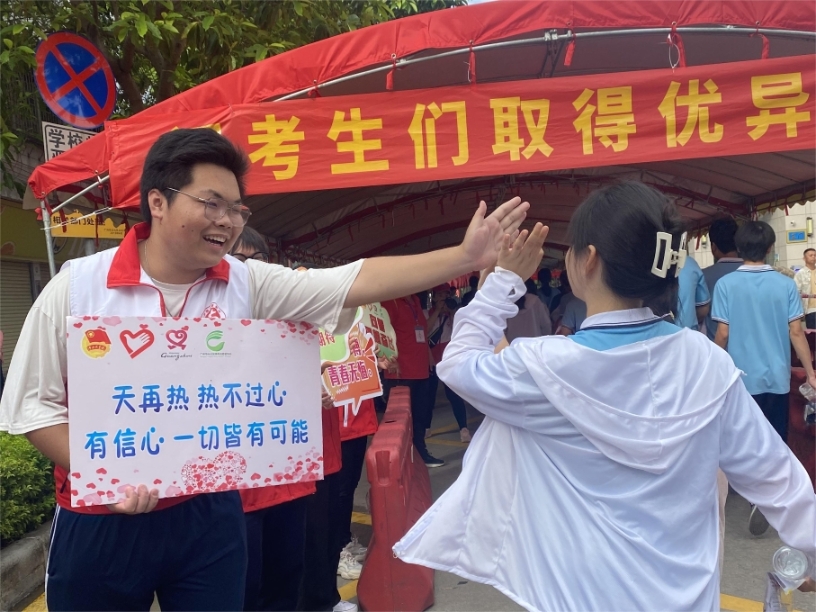 为考生加油击掌鼓劲,为送考家长及现场执勤工作人员派送清凉饮品,劝离派发广告宣传单张的培训机构……记者观察到,在广州各大考场门口,随处可见志愿者忙碌的身影。他们有的是大学生,有的是中学生,都在用力所能及的服务帮助广大学子迎战高考。