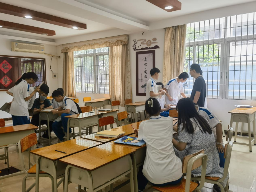 除此之外,白云区的广州空港实验中学提供“午间备问”心理减压志愿服务活动。来自2023届毕业班高考9大学科的科任教师,每天中午12:00至13:00均在英华楼悉心为高三学子进行心理疏导及课业答疑解惑。该项目自2022年开展以来,广泛吸引高三学子的参与,每天中午英华楼都“门庭若市”,广受学生和家长好评。
