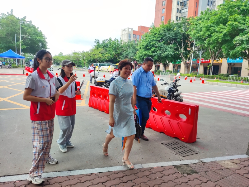 高考第一天,广州青年志愿者协会文明交通志愿服务总队队长曾莉芳就带领志愿者们早早来到广州市第七中学门口开展志愿服务。只见她忙碌地协助交警疏导现场车辆,指引车辆和路人有序通行。