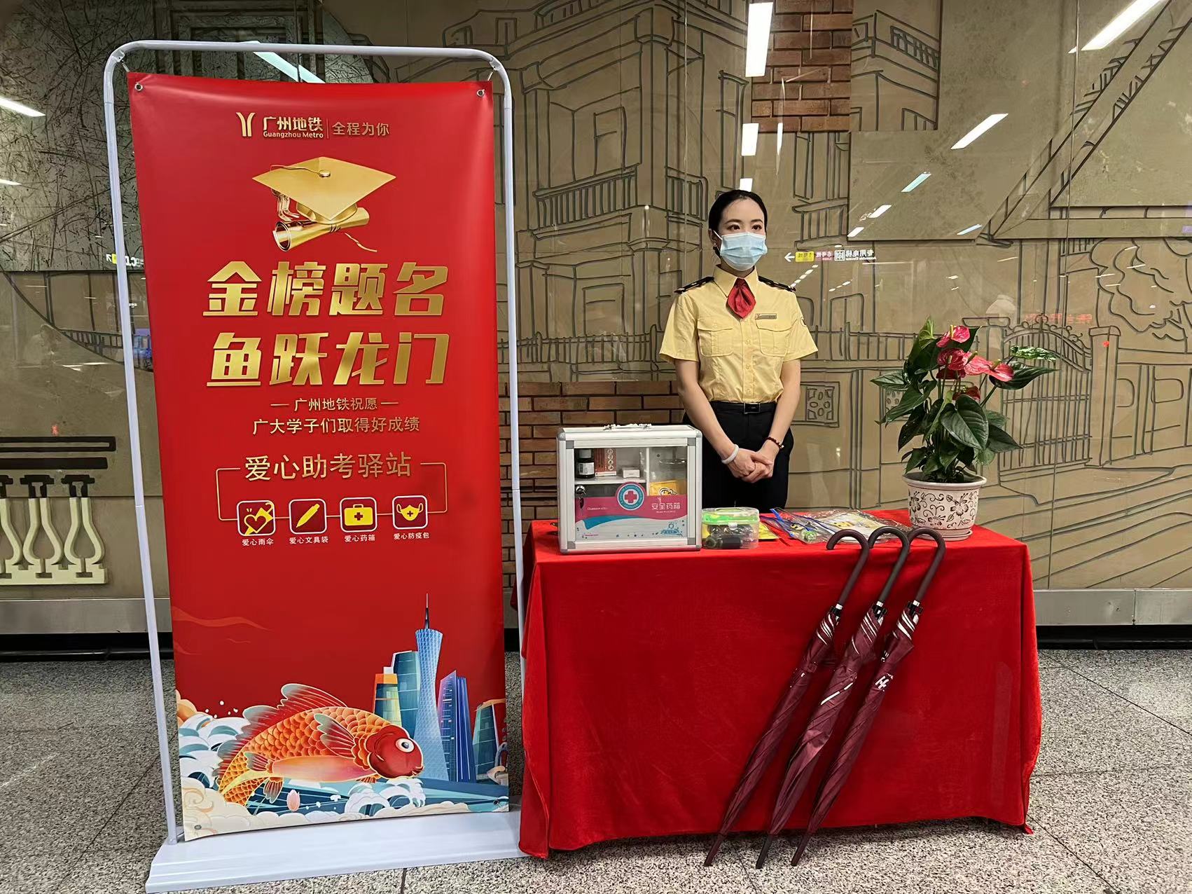 地铁出口出入口附近特意设置了爱心助考驿站,