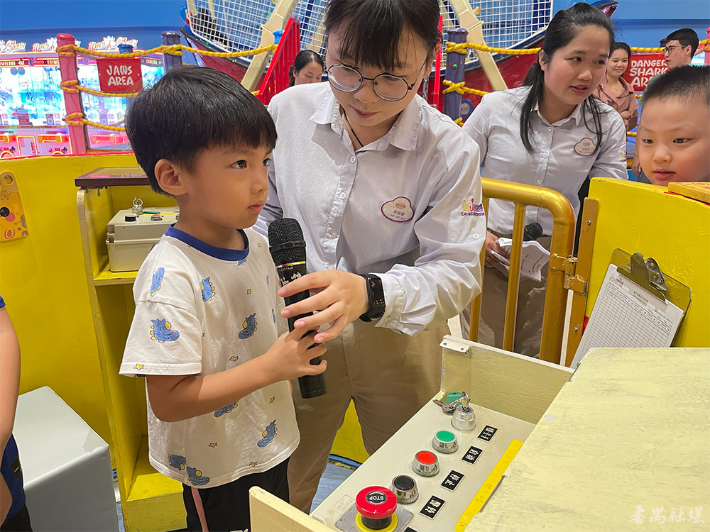 体验活动在长隆欢乐世界宝贝乐园景区内进行。孩子们带着期盼、带着疑问和好奇,在指导老师的讲解下,学习游乐设施的电源开关、警铃按钮等相关理论知识,并进行了实操训练。
