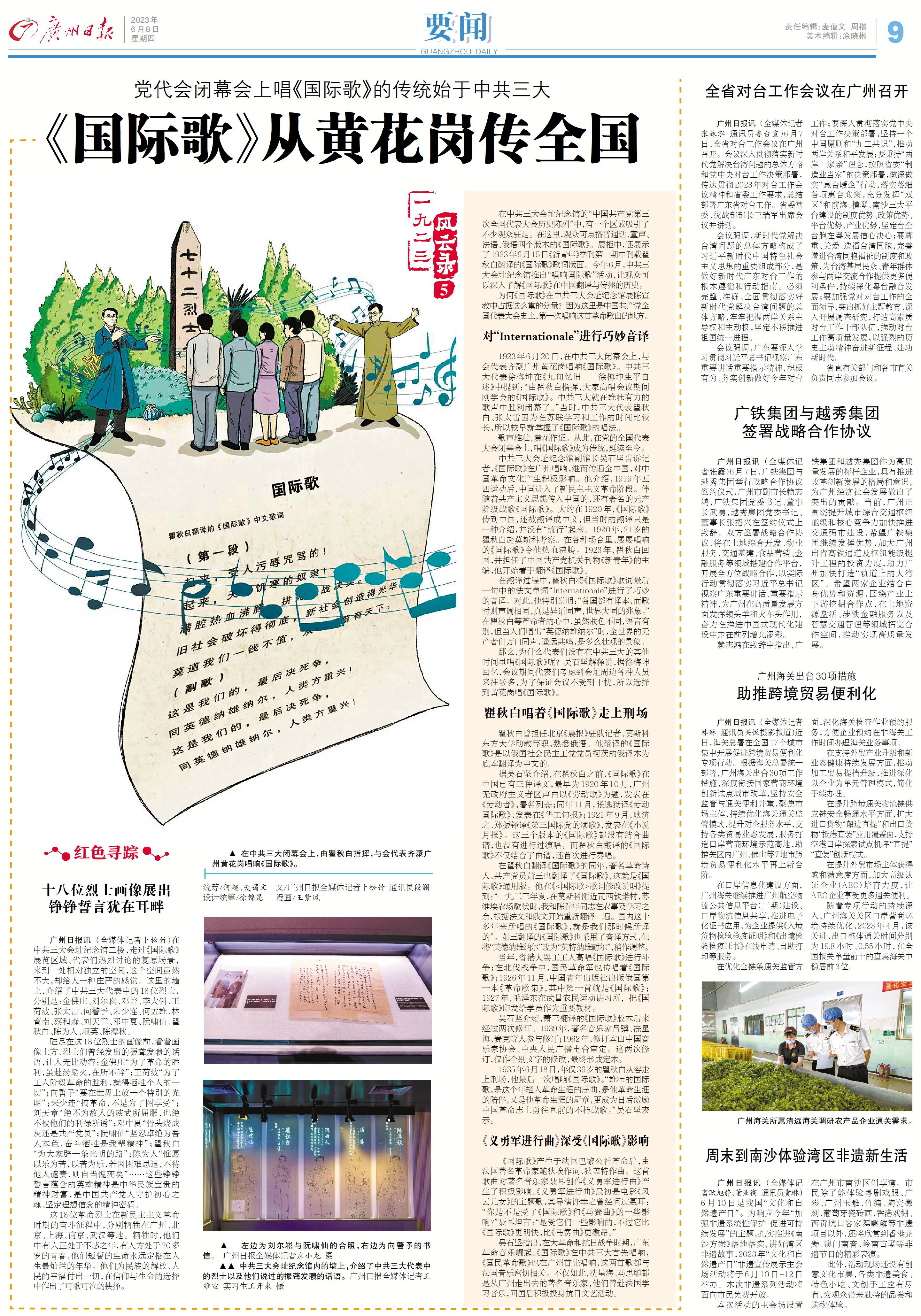 中共三大会址纪念馆副馆长吴石坚告诉记者,《国际歌》在广州唱响,继而传遍全中国,对中国革命文化产生积极影响。他介绍,1919年五四运动后,中国进入了新民主主义革命阶段。伴随着共产主义思想传入中国的,还有著名的无产阶级战歌《国际歌》。大约在1920年,《国际歌》传到中国,还被翻译成中文,但当时的翻译只是一种介绍,并没有“流行”起来。1920年,21岁的瞿秋白赴莫斯科考察。在各种场合里,屡屡唱响的《国际歌》令他热血沸腾。1923年,瞿秋白回国,并担任了中国共产党机关刊物《新青年》的主编,他开始着手翻译《国际歌》。