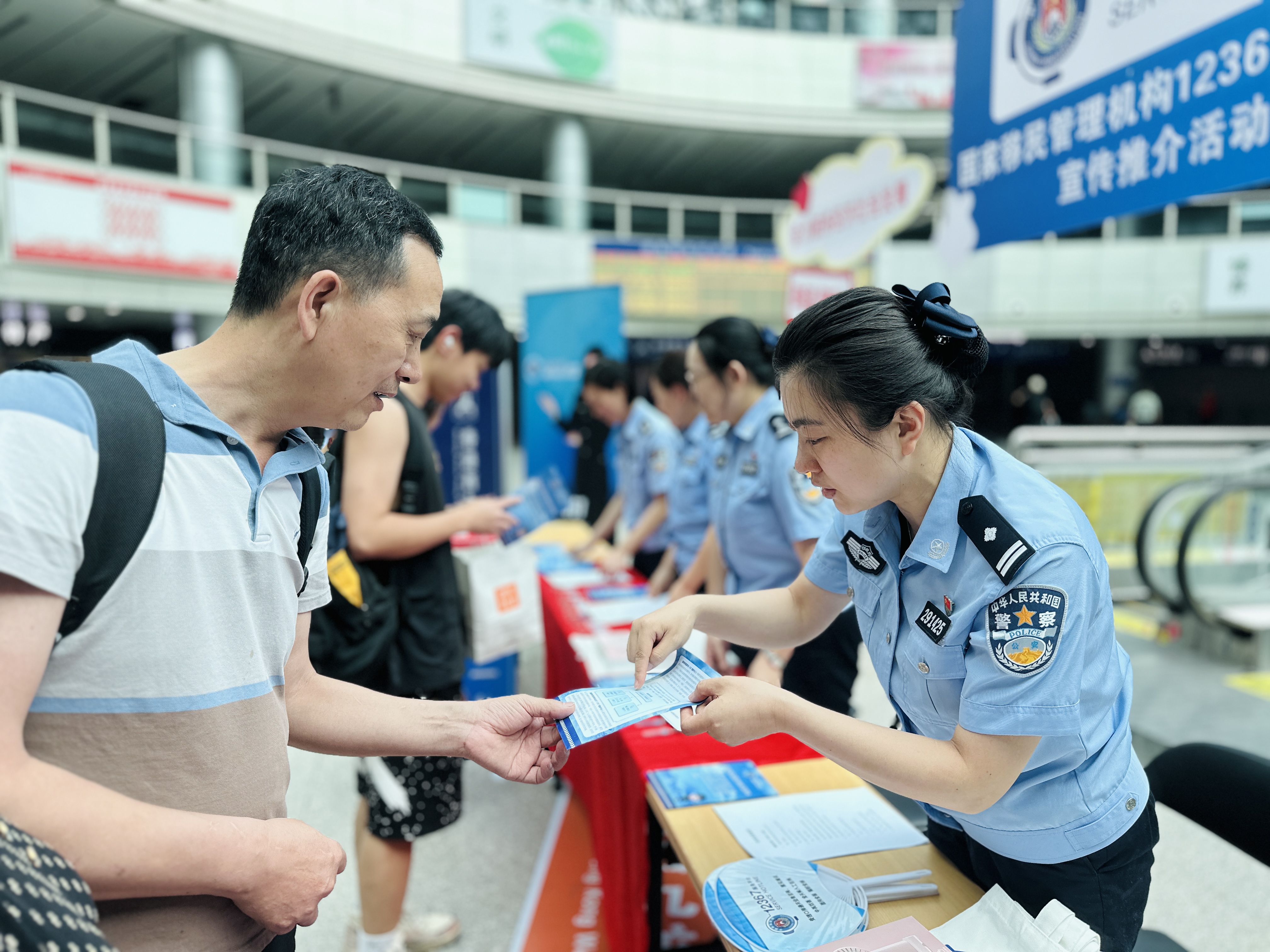 原来,自6月7日起,广州边检总站连续三天把12367宣传推介现场放在执勤口岸、服务窗口、高校社区等一线场景,通过设置现场咨询台、打卡背景墙、发放宣传彩页、有奖竞答等方式,与群众热情互动,宣传国家移民管理机构12367服务平台的职责功能和运行成效,推介中外人士通过12367官方渠道获取口岸通关和出入境办证事宜。