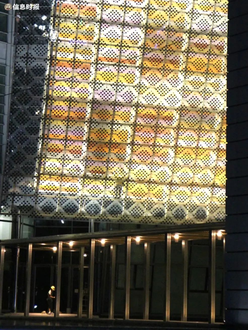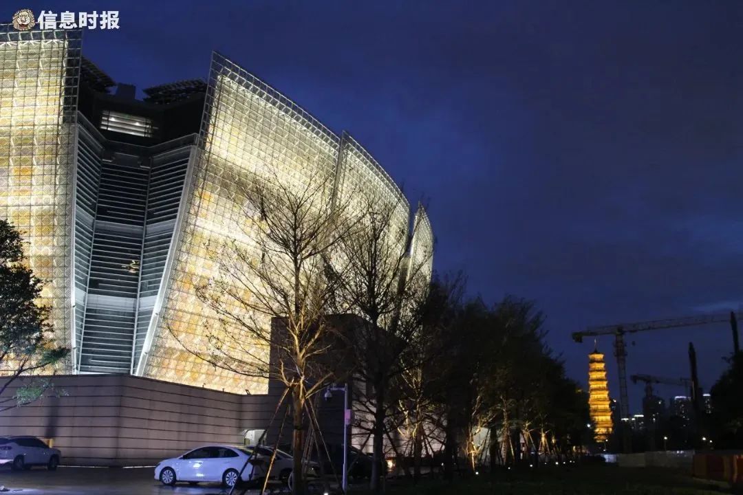 目前新馆两个入口都设有保安24小时值守,据了解,晚上7点左右新馆就会亮灯,当前正处于亮灯调试阶段。晚上7点多,在现场可以看到有工人正在巡查亮灯情况并进行检修。