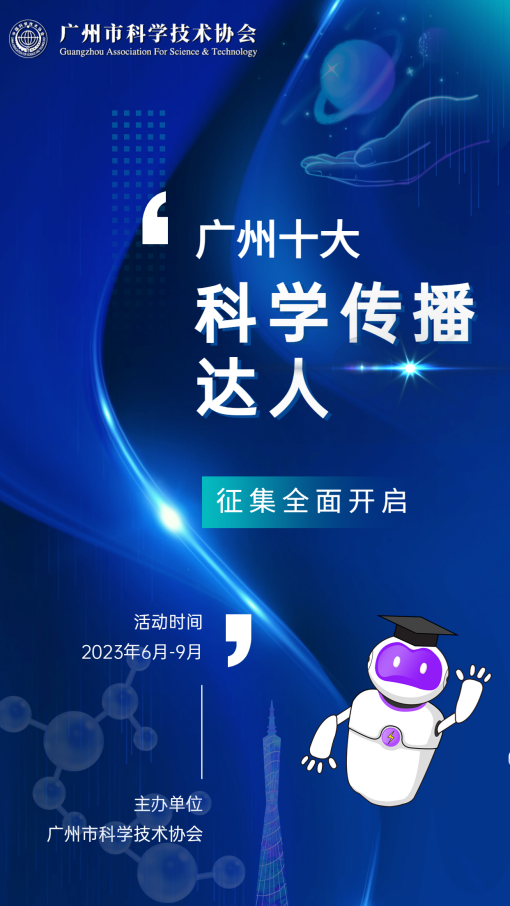 即日起至6月19日,由广州市科协组织开展的“广州十大科学传播达人”学习宣传活动正面向全社会开放报名通道!征集活动结束后,将组织专家遴选出10位“广州十大科学传播达人”,在市科协网站进行公示。