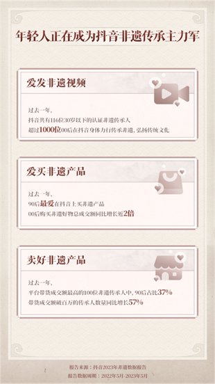 适逢6月10日文化和自然遗产日,抖音发布了《2023非遗数据报告》(以下简称报告)。