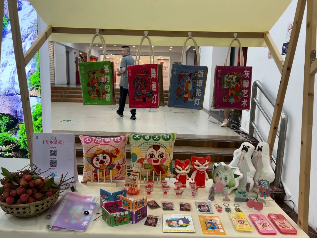 当天,广州青宫一楼还搭建了派潭文旅推介展台,展台以独具岭南风情的镬耳屋为基础,充分展现派潭灵山秀水的特点,吸引了众多市民前来打卡互动。展台摆放了派潭貔貅、渔灯、毛茶工艺品等创意十足的“非遗”文创产品,市民通过扫码关注、参与小游戏,获得与机器人拍照互动、荔枝采摘券、景区门票、荔枝木书签、派潭酒店6折券等精美礼品。