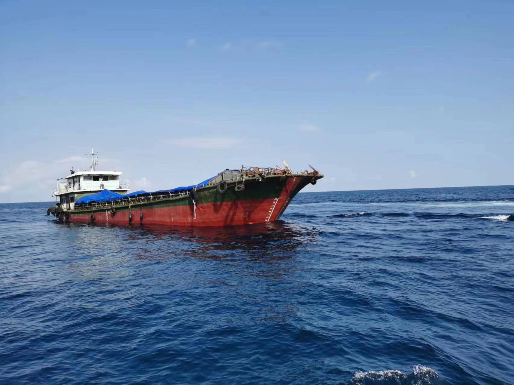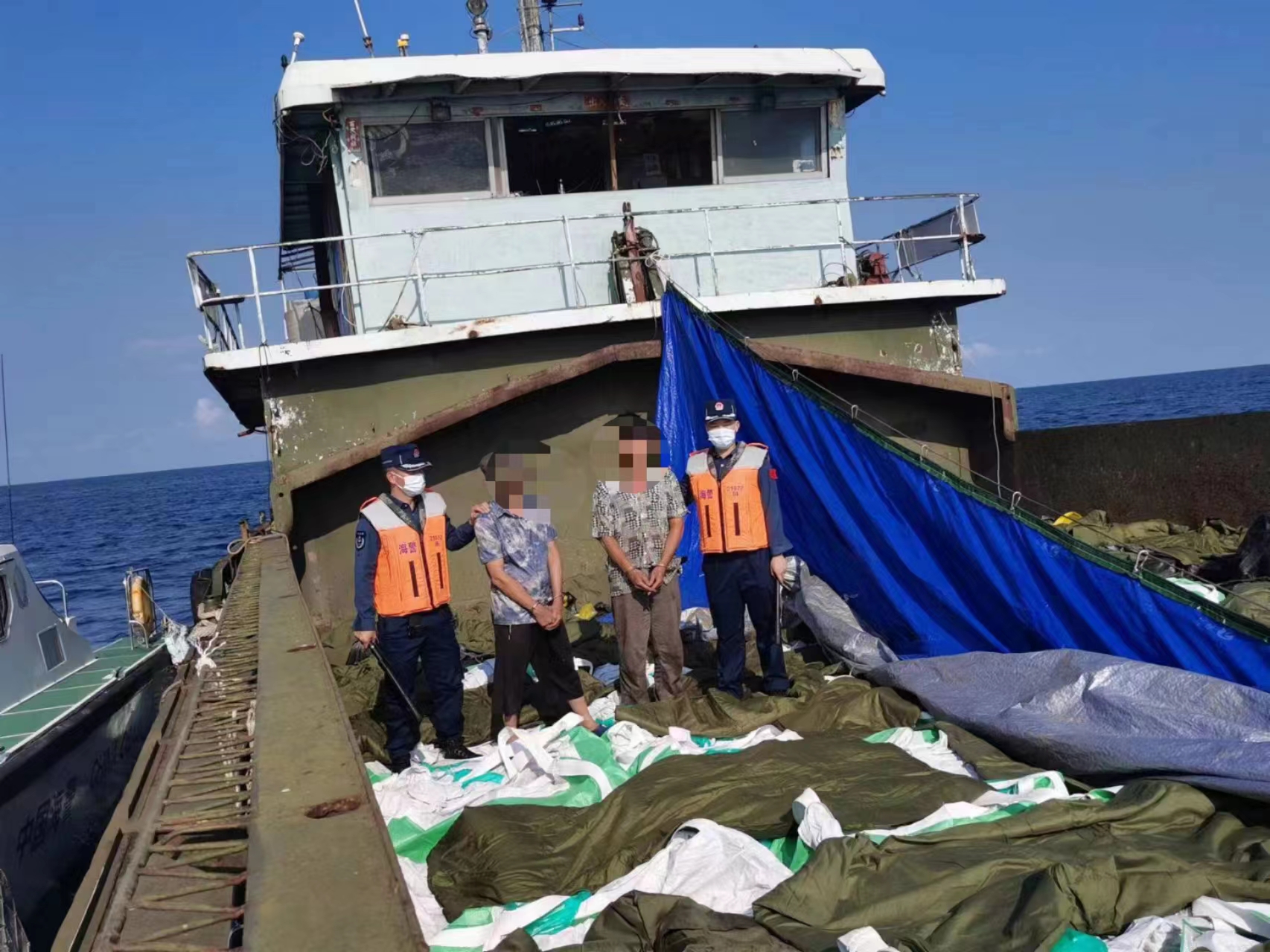 6月3日下午2时30分许,江门海警局接警称,在江门台山乌猪岛海域有一艘船舶形迹可疑,疑似在进行走私活动。当天下午,该局执法艇到达乌猪岛附近海域进行排查,锁定一目标船舶且其周围散发着一股刺鼻臭味。海警执法员随即喊话警告,示意其停船接受检查。