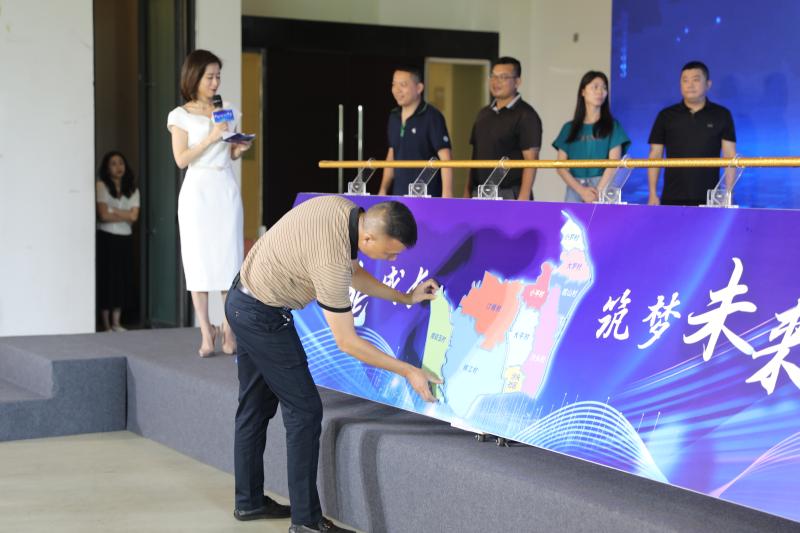番禺区沙头街总面积18.1平方公里,辖内有9条行政村、2个社区。在论坛启动仪式上,9位村居书记、代表依次走到台前,通过粘贴拼图的方式,共同构筑沙头街高质量发展版图。随后,沙头街领导一起推杆,正式启动“赋能成长 筑梦未来”2023年沙头街高质量发展论坛。
