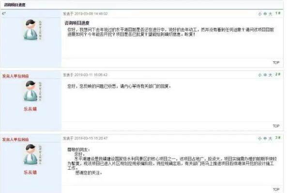 ▲今年有网友咨询东平湖进展,官方进行了回复