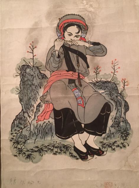 《吹口琴》描绘了阿诗玛吹奏口琴的形象