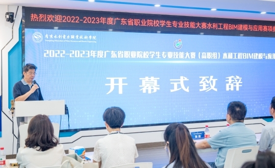 黄涛书记表示,希望各参赛选手以本次大赛为契机,相互学习交流,切磋技艺,赛出风格,赛出水平,充分展现广东省技术技能人才的精湛技艺和良好的精神风貌;希望各兄弟院校以本次大赛为桥梁,进一步增进交流,深化合作,相互促进,推动广东省水利工程BIM技术应用和职业教育协同快速健康发展。