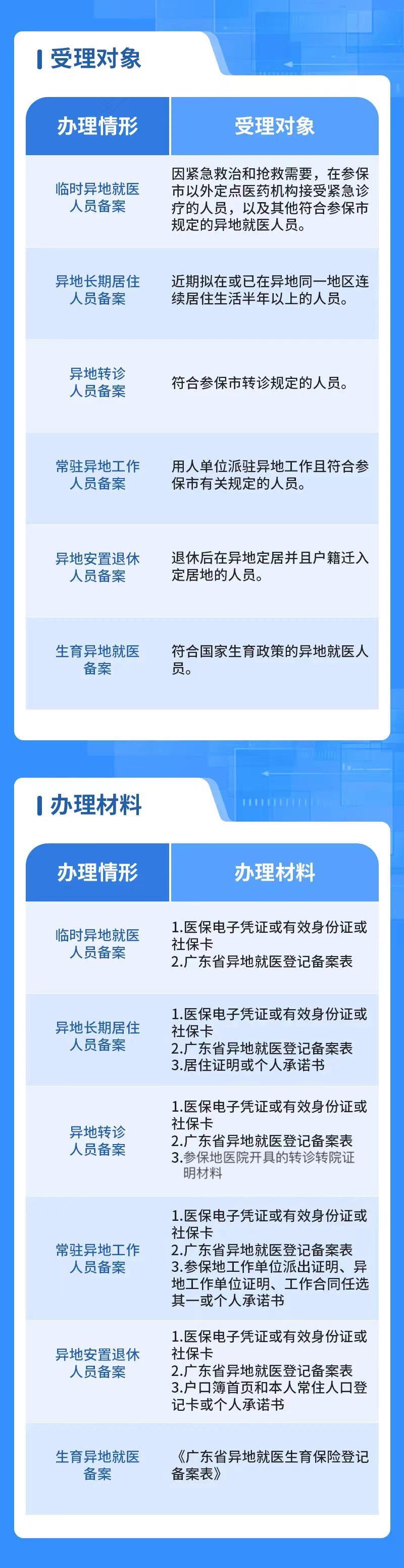 目前,“穗好办”App已上线“异地就医备案”主题服务专栏。广州参保人在异地就医只需要打开“穗好办”App,三五分钟即可完成备案申请。不同人群办理备案需要准备的材料如下表。
