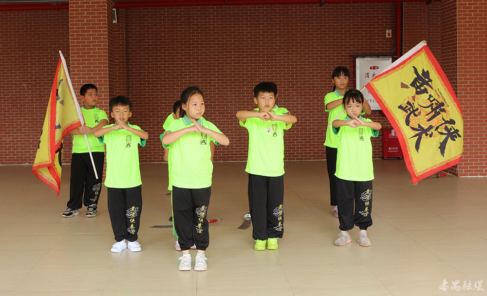 小龙小学学生展示黄啸侠拳法、刀法