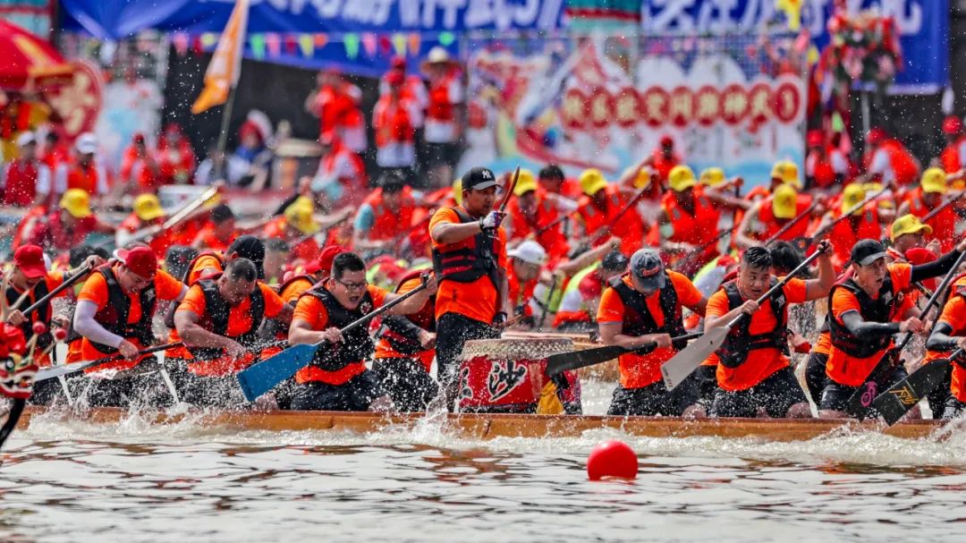 “广药集团杯”2023年广州国际龙舟邀请赛在中大北门广场至广州大桥之间的珠江河段举办,今年的最大亮点除了在江中竞渡的125条龙舟,还有岸上红红火火的非物质文化遗产展演,体育“搭台”,文化、商业、旅游“唱戏”,弘扬中华传统文化,让市民透过赛事了解、学习、传承传统文化,这也是对赛事丰富和升级。