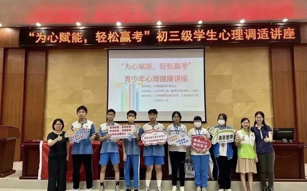 近日,广州市番禺区大龙街团工委联合街少工委、番禺区青年地带(石碁站)和悦社工、育龙中学开展“为心赋能,轻松赢考”心理健康讲座,充分发挥共青团组织服务青少年的职能,效缓解考生心理压力。