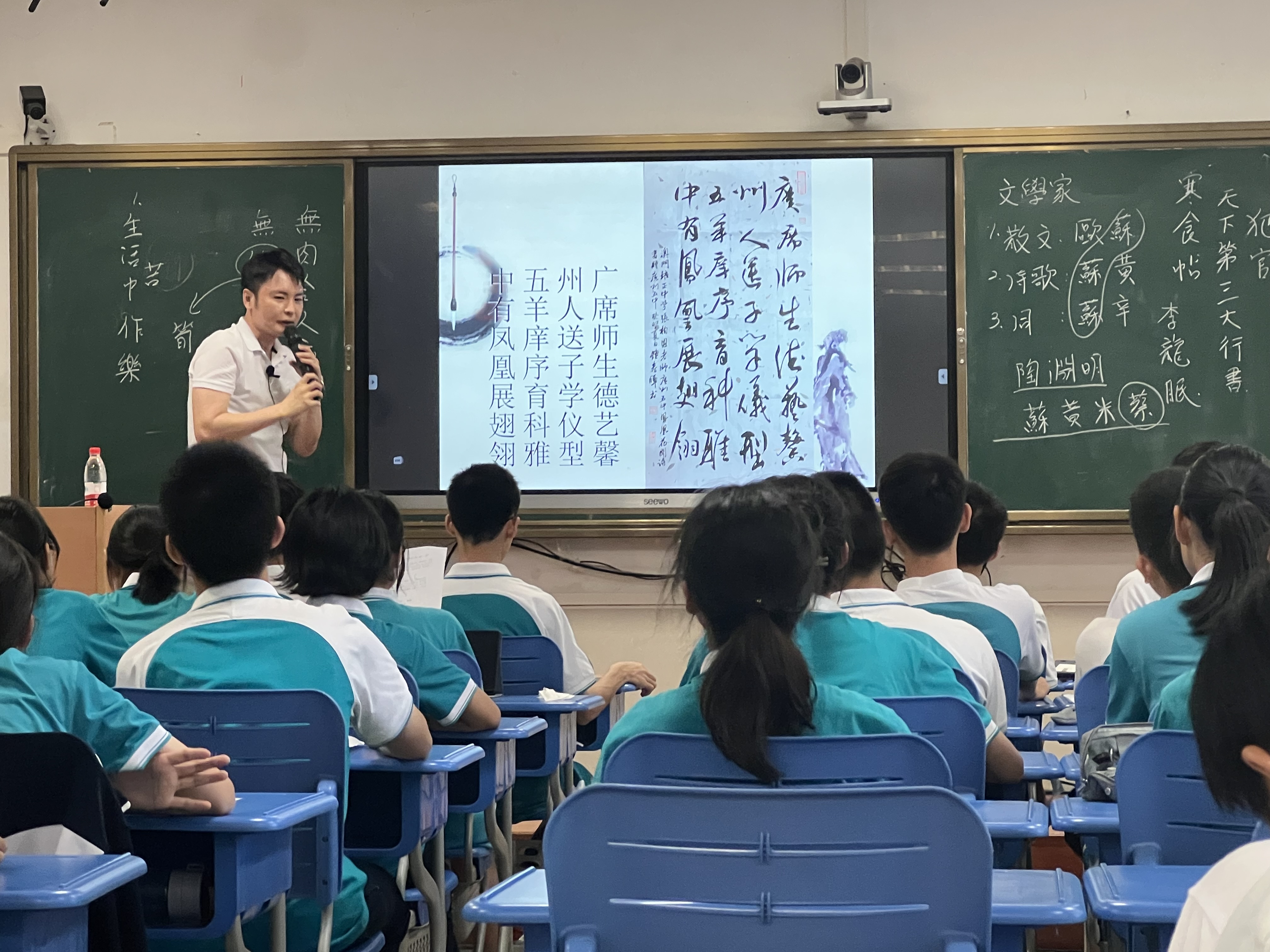 “美食是苏东坡苦中作乐、在生活中寻找心灵慰藉的另一种创意展现。”来自澳门培正中学的语文教师张柏恩则带来了语文课《在诗词中遇见苏轼》。围绕苏东坡“美食家”的身份,他结合多首苏轼诗词,用风趣幽默的语言带同学们领略苏轼诗词中的美食,也让学生更全面并多元地认识诗人,理解古代文人的不同经历及更深层次的心理。