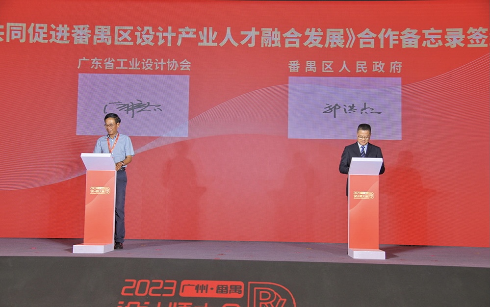 大会坚持招商引资、招才引智同频共振,番禺区政府与广东省工业设计协会签订《关于共同促进番禺区设计产业人才融合发展》合作备忘录,番禺区人社局、清美工业设计策略与原型创新研究所、广东省工业设计协会、广州美术学院视觉艺术设计学院、番禺区厂商会、区重点企业等代表签订《关于共建番禺设计产业人才联盟》合作备忘录,举行番禺工业设计高级工程师人才工作站揭牌仪式,推动粤港澳大湾区的设计人才交流、设计产业合作,共同建设粤港澳大湾区高水平人才高地。