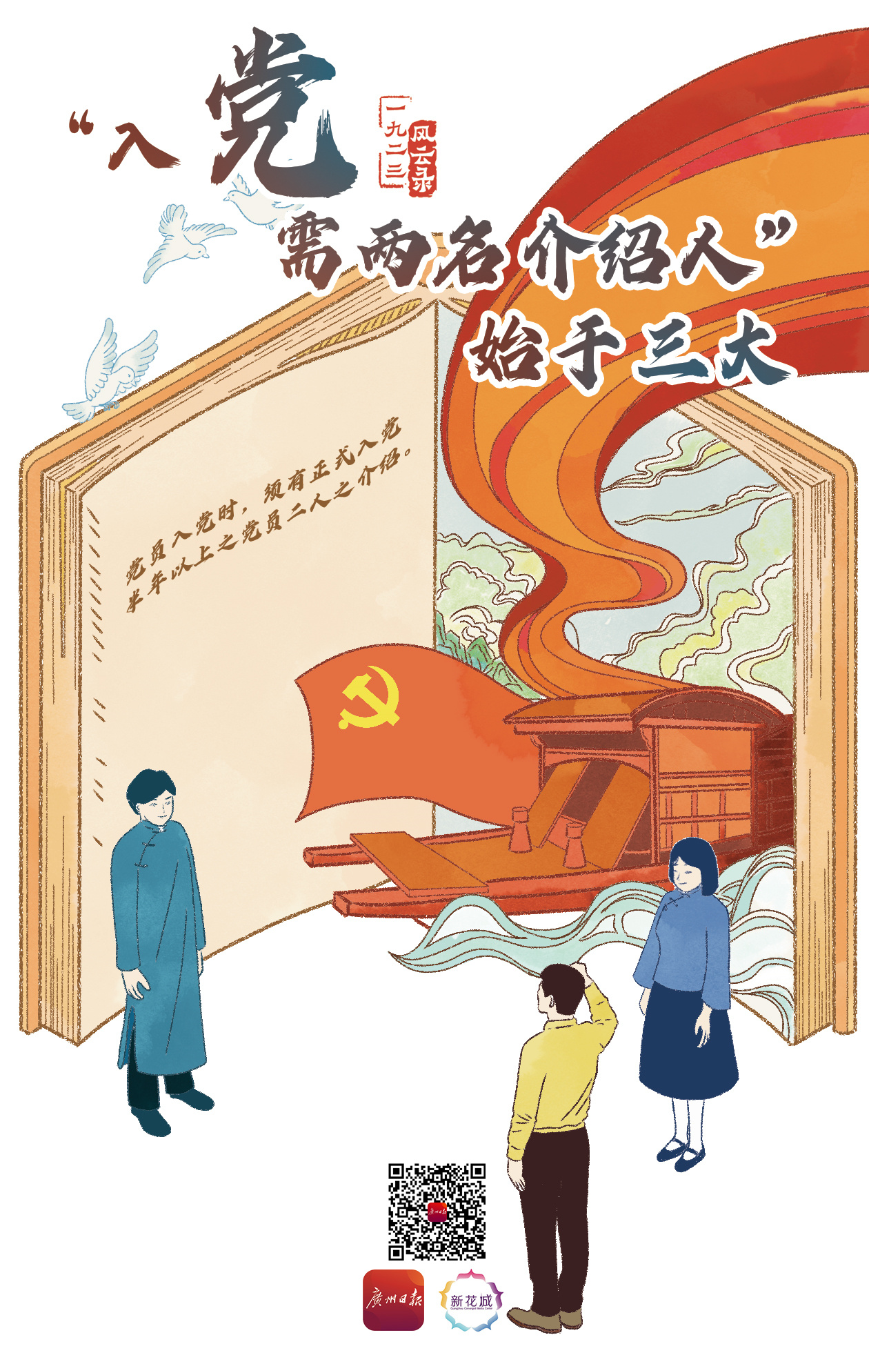 “申请入党的人,要填写入党志愿书,要有两名正式党员作介绍人,要经过支部大会通过和上级党组织批准,并且经过预备期的考察,才能成为正式党员。”中共现行党章如此规定。入党时要有两名党员介绍这一规定,最早可追溯到中共三大。那么,入党时为什么要有两名介绍人?详情>>>