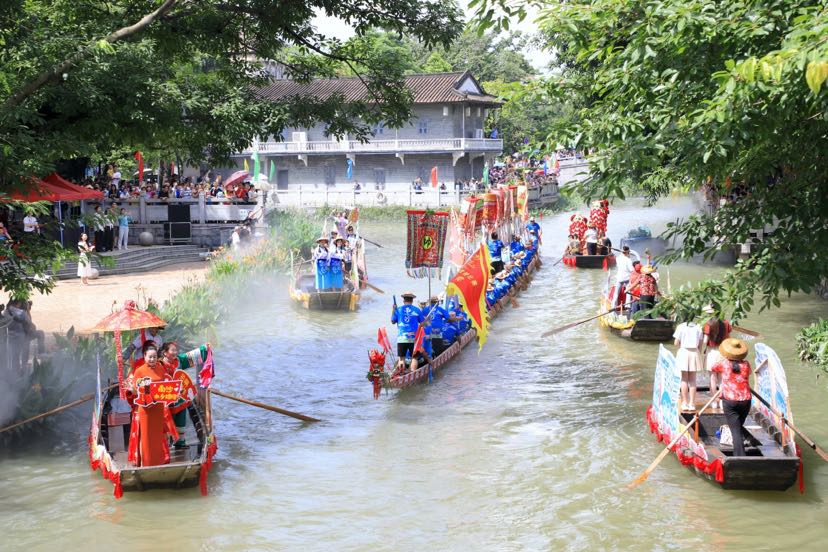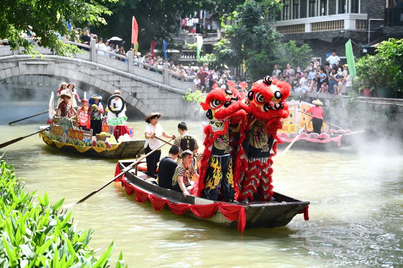 五月莺歌燕舞日,又到粽味飘香时。6月18日,由广州市南沙区东涌镇社会事务综合服务中心(文体中心)主办,南沙区东涌镇扫黄打非办、南沙区东涌镇新时代文明实践所协办的“彩艇巡游戏河涌,水乡胜景最岭南”东涌镇2023年端午节彩艇巡游活动在濠涌亲水平台举行,醒狮助兴、水乡婚礼剧表演、发斗表演、撑粉表演、八只彩艇巡游……丰富多彩的岭南水上风情表演吸引了上千人到场观看。