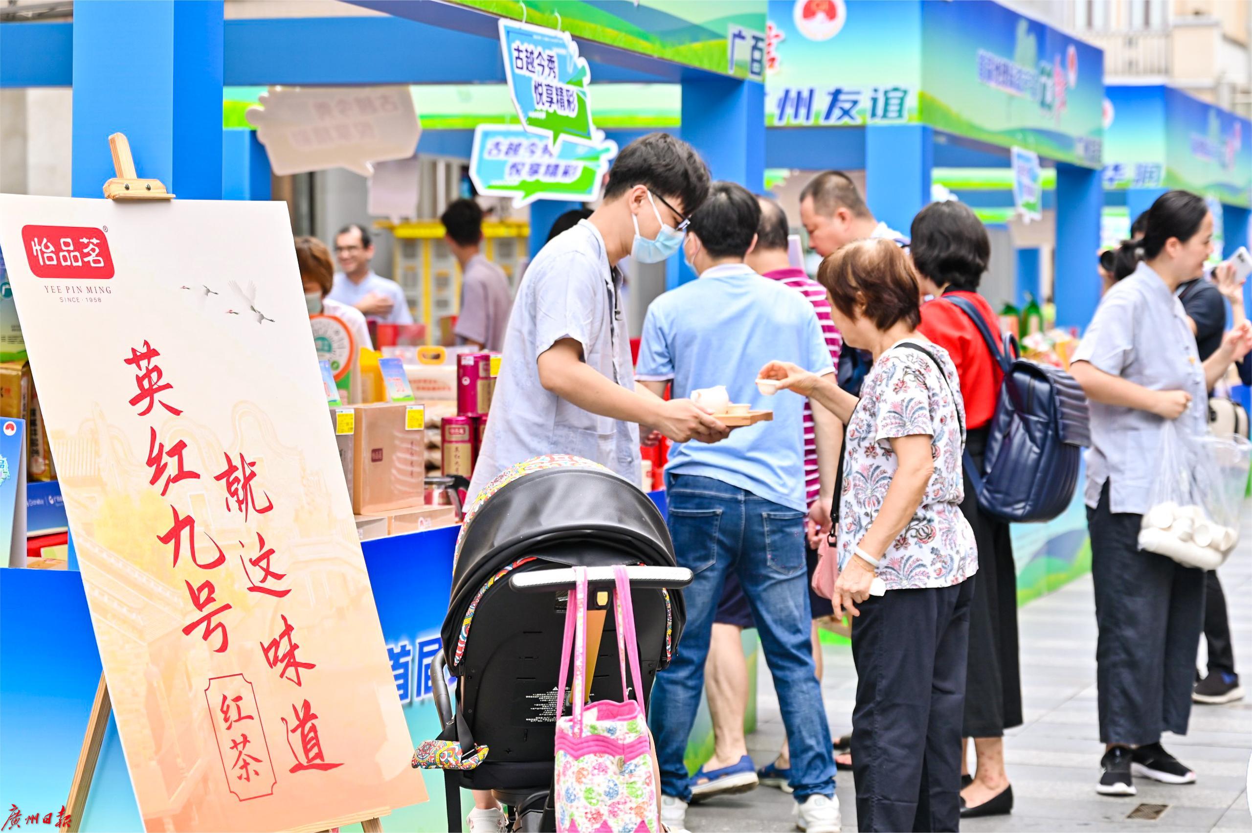 首届地理标志产品广货手信节现场,市民在品尝地理标志产品。