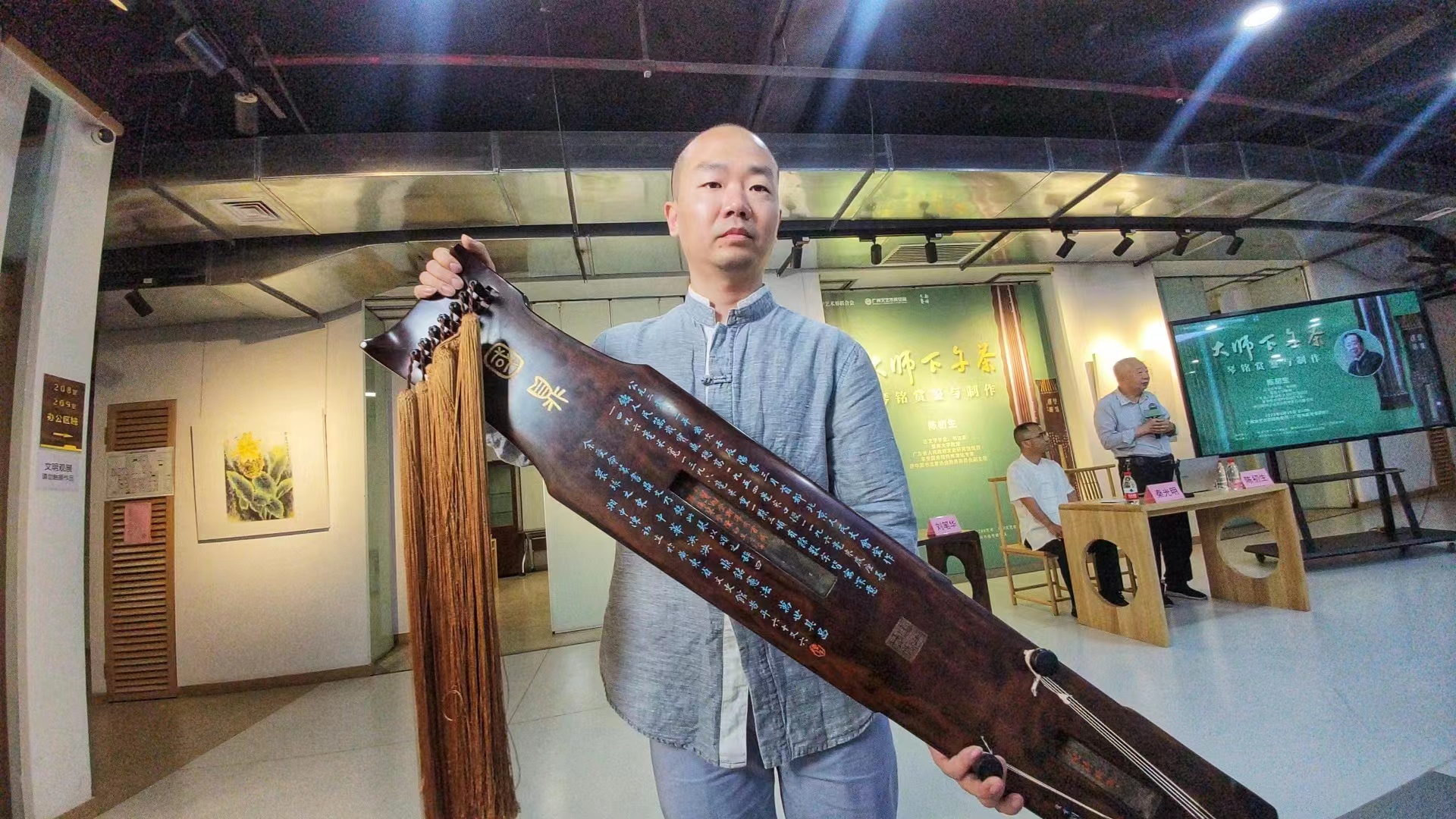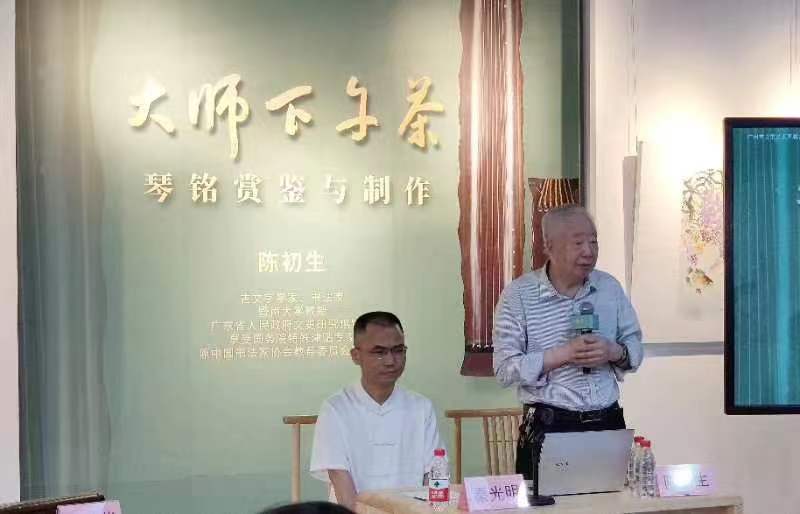 在15日的这场活动中,陈初生与广州市非物质文化遗产古琴斫制技艺代表性传承人刘笔华、青年书法家秦光明一道,向现场古琴爱好者、市民群众普及和分享琴铭的赏鉴与制作知识。