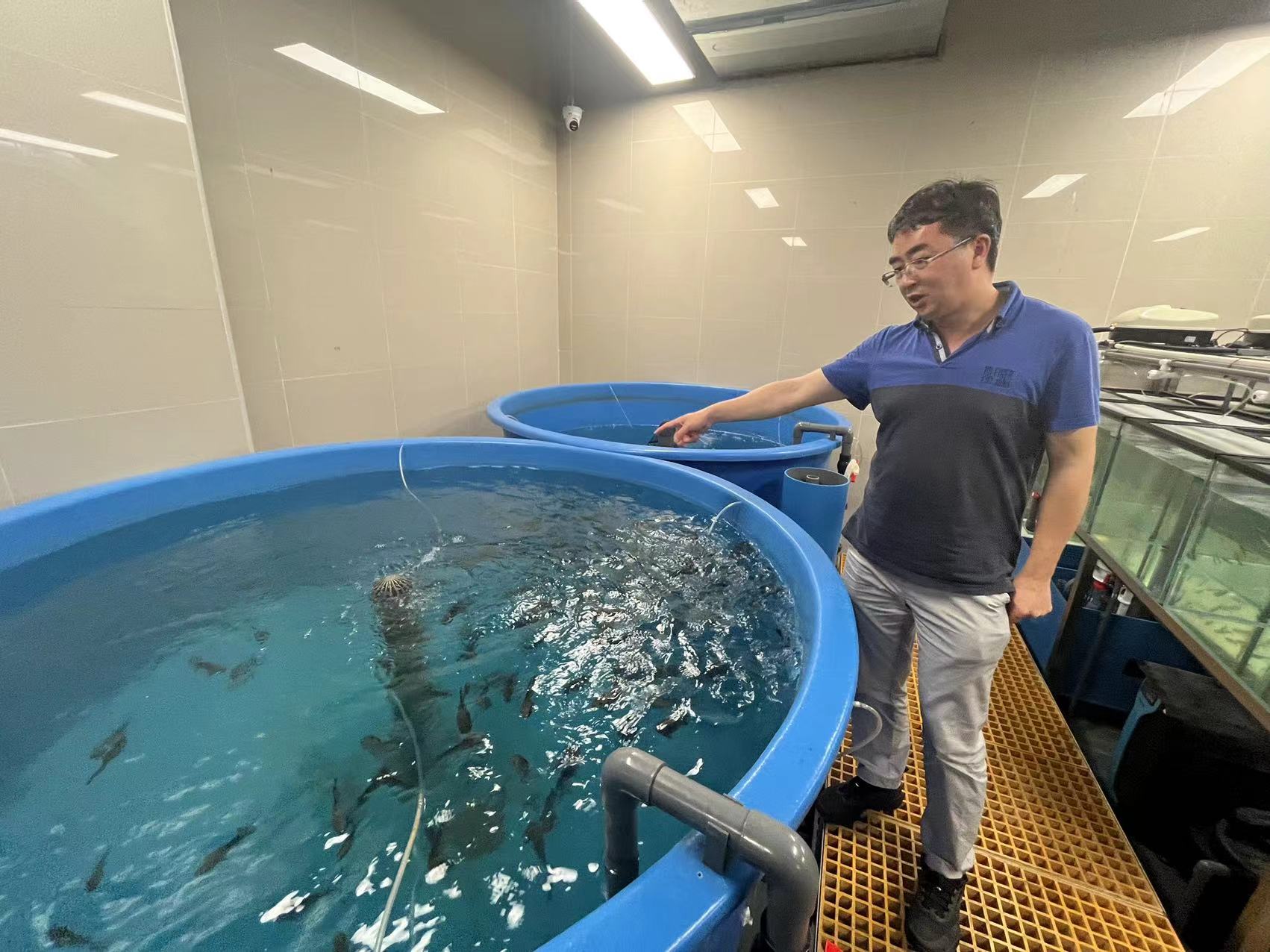 张勇说,海洋鱼类繁育需要慢工出细活,每一个新品种的培育都需要进行亲本的选育,通常选育4代后,遗传性状才能稳定,对于石斑鱼来说,性成熟一般是4-5年,所以至少需要20年时间,而采用杂交育种的方法时间则会缩短一半。石斑鱼是粤港澳大湾区最受欢迎的名贵海鱼品种,常见品种有二十多种。所以,从他读研究生开始,就在林浩然院士指导下将鱼类良种繁育研究的目标锁定在了石斑鱼上。做鱼类良种繁育需要坐得起冷板凳,从亲本开始选育到第一个石斑鱼新品种的通过审定,花了整整10年时间。“亲本要精挑细选,10万条鱼中最后只能选剩800条来培育为成熟亲本,耗费成本很高,可能一条亲鱼的价值能达到几十万元。如果养死了,那前面的心血都全白费了。”张勇说,在过去20多年间,林浩然院士团队已经培育出了两个经过国家审定的石斑鱼新品种——虎龙杂交斑和云龙杂交斑。最近,和中国水产科学研究院黄海水产研究所等联合申报的第三个石斑鱼新品种——金虎杂交斑,也通过了国家审定,已在农业农村部网站公示。