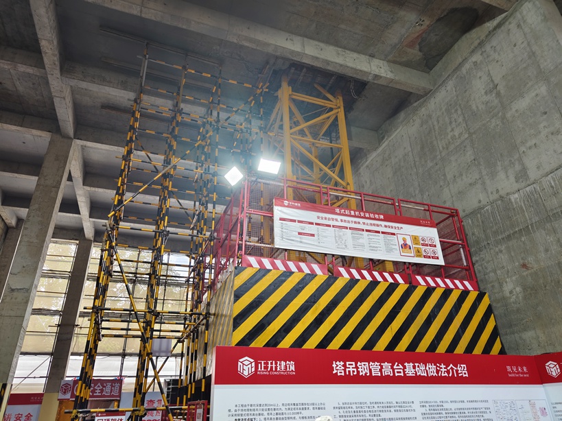 会后,全体与会人员对项目的智慧工地、安全体验馆、新技术应用、安全管理类、安全设施设备类、智能建造和绿色施工等亮点进行现场观摩。通过对梁侧预埋悬挑脚手架、塔吊钢管高台基础、工字钢后浇带独立支撑技术、曳引式井道内专用施工升降机、安防监控、钢与混凝土组合结构应用技术和建筑隔震技术等新技术的交流学习,该项目更好地示范引领建设工程安全管理“人防+技防”深度结合,使工作水平迈上新台阶。