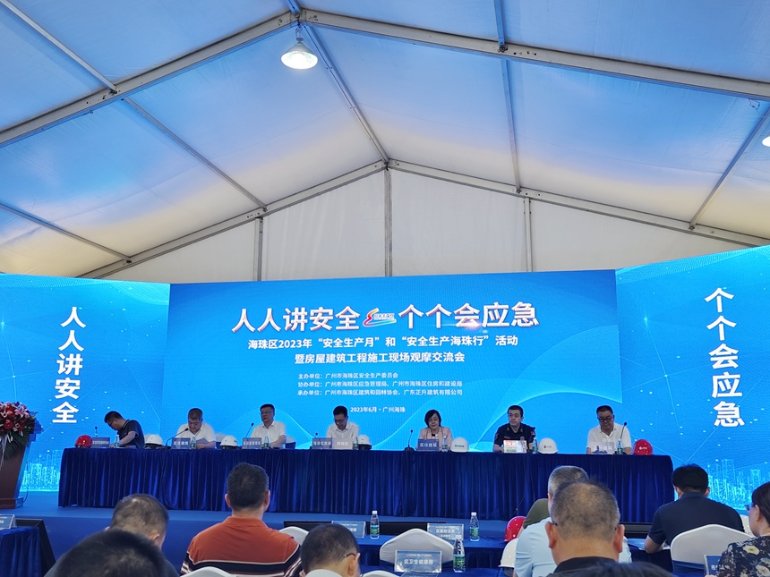 6月19日上午,海珠区安全生产委员会在新市头村城中村改造项目召开,海珠区2023年“安全生产月”和“安全生产海珠行”活动暨房屋建筑工程施工现场观摩交流会。区领导、区住建局、区应急管理局、各街道、区质监站等相关部门负责人以及辖区在建项目的建设、施工、监理单位项目负责人参加了会议。