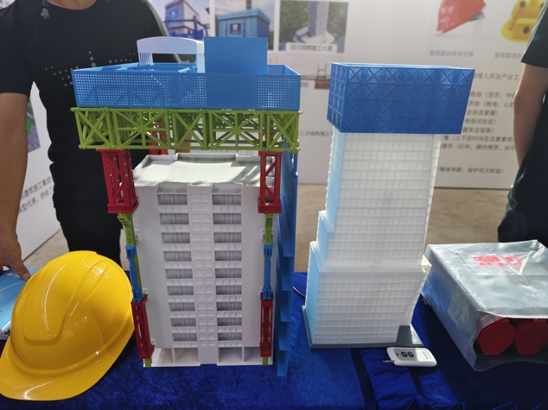 多家企业现场展示了建筑施工安全生产的最新科技产品,达蒙安防带来了能监控工人安全状况并设置sos报警按钮的新型智能安全帽,还有终结露天作业、智能控制机械化设备平台“造楼机”;广联达科技的塔机安全可视综合管理系统能够对塔吊机械和司机进行全方位可视化监测和指挥;云蝶科技则演示了防止造假的施工工单记录智能纸笔。