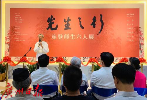 由广州画院、荔湾区文联、广州羊城书法研究会、广州文化公园联合主办的“先生之行”——连登师生六人展正在广州公园文荟馆展出。本次活动展出羊城书法研究会著名书画艺术家连登、陈春盛、江泽桂、任斌强、黄金生、陈立华书画作品共70幅。连登师生六人如一花开五叶,艺术造诣享誉岭南艺坛,艺术风格各具妙相,综合反映艺术家的学问、修养、为人。本次展览展期为6月17日至6月25日。