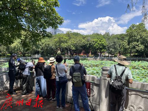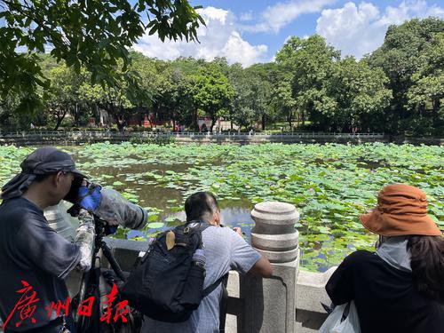 广州起义烈士陵园,塘里的荷花盛开,吸引了不少摄影发烧友前来拍摄。烈士陵园是广州市区首个大面积种植荷花的公园,荷塘面积近9000平方米。