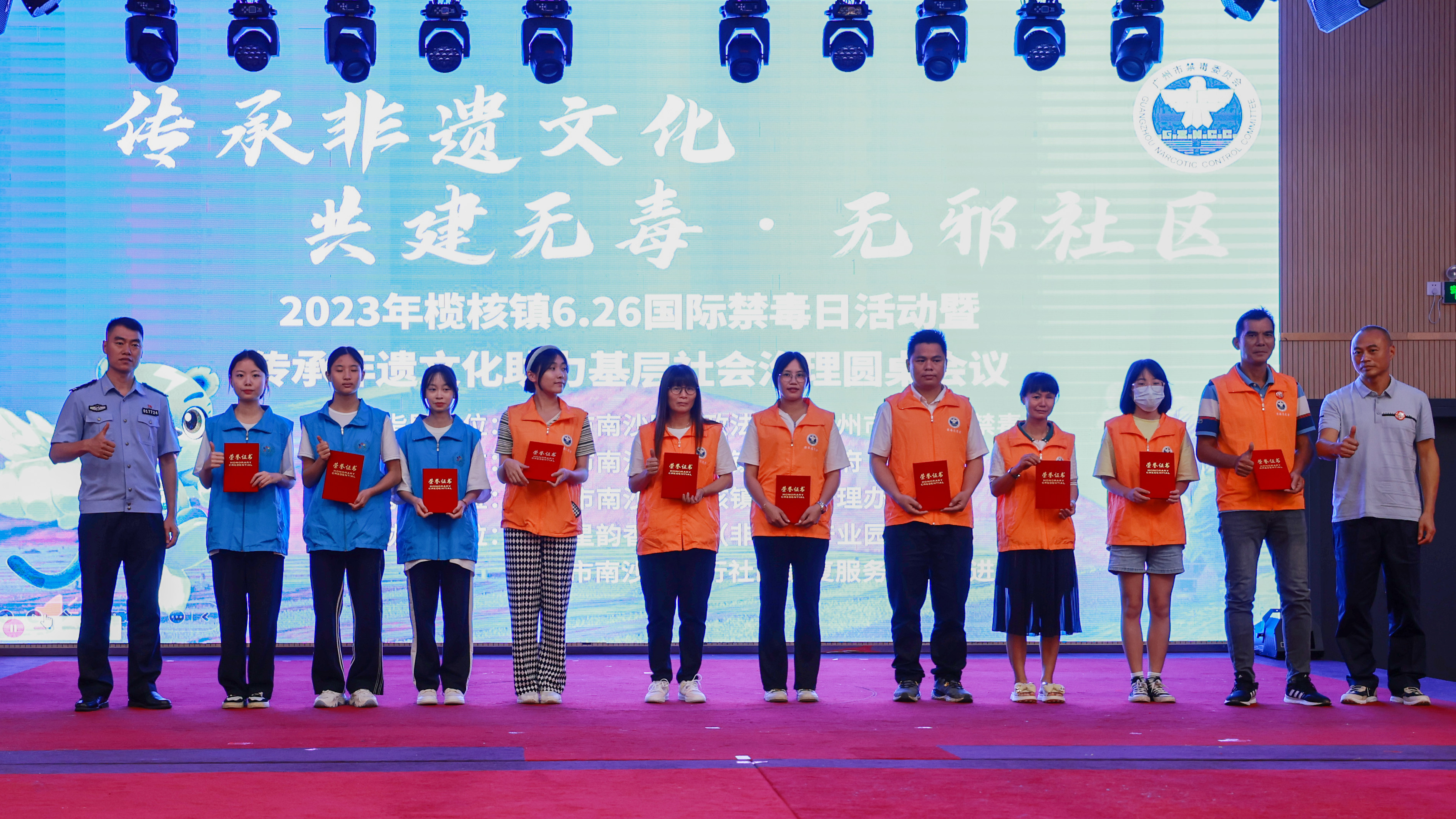 为进一步提升全民禁毒意识,将禁毒、反邪教育与非遗文化相结合,创新禁毒、反邪理念宣传新方式,在第36个国际禁毒日(6月26日)到来之际,在广州市南沙区委政法委、南沙区禁毒办指导下,榄核镇于2023年6月21日在云纱星韵香云纱(非遗)产业园举办“传承非遗文化,共建无毒·无邪社区”榄核镇国际禁毒日宣传活动。