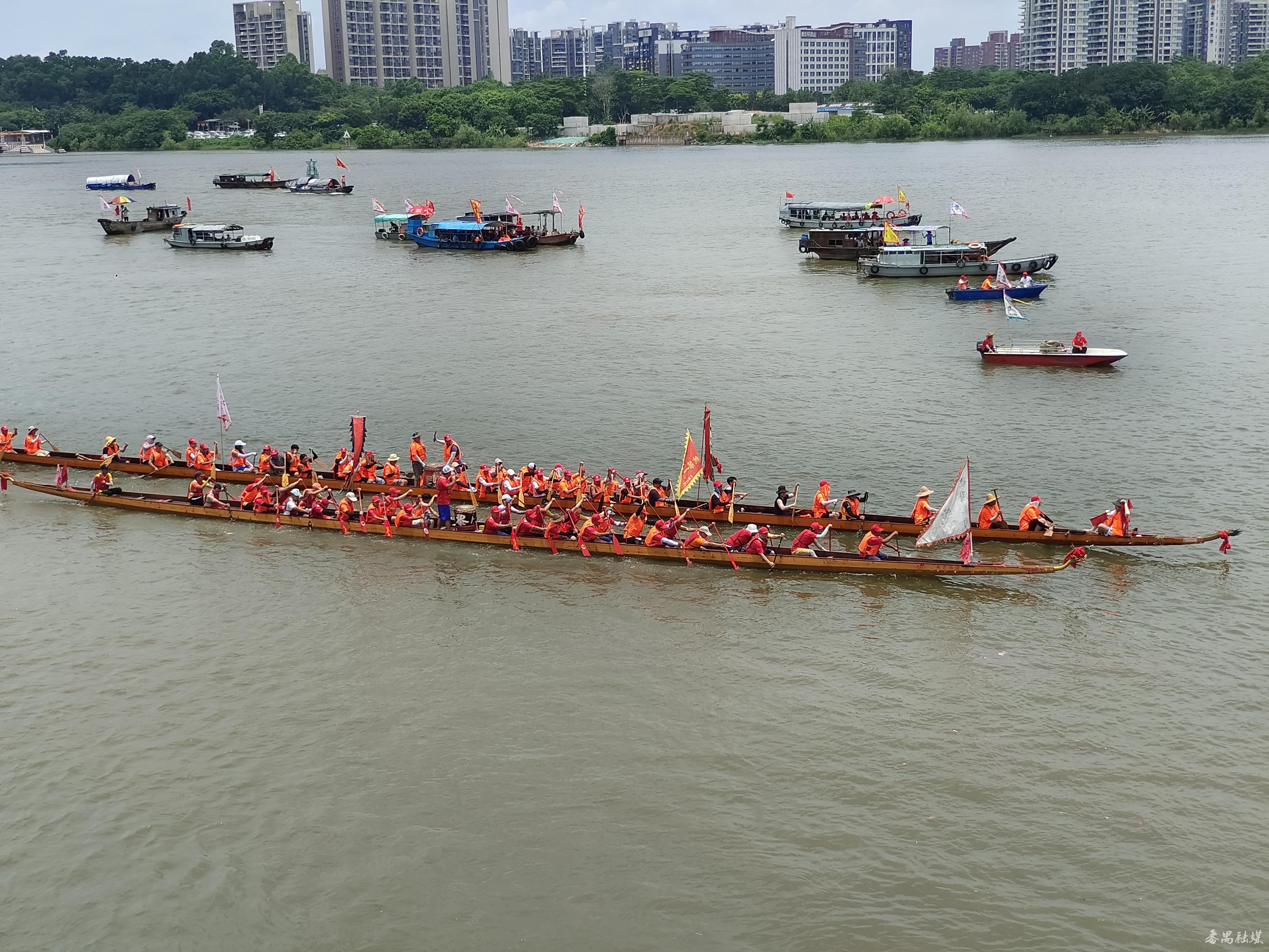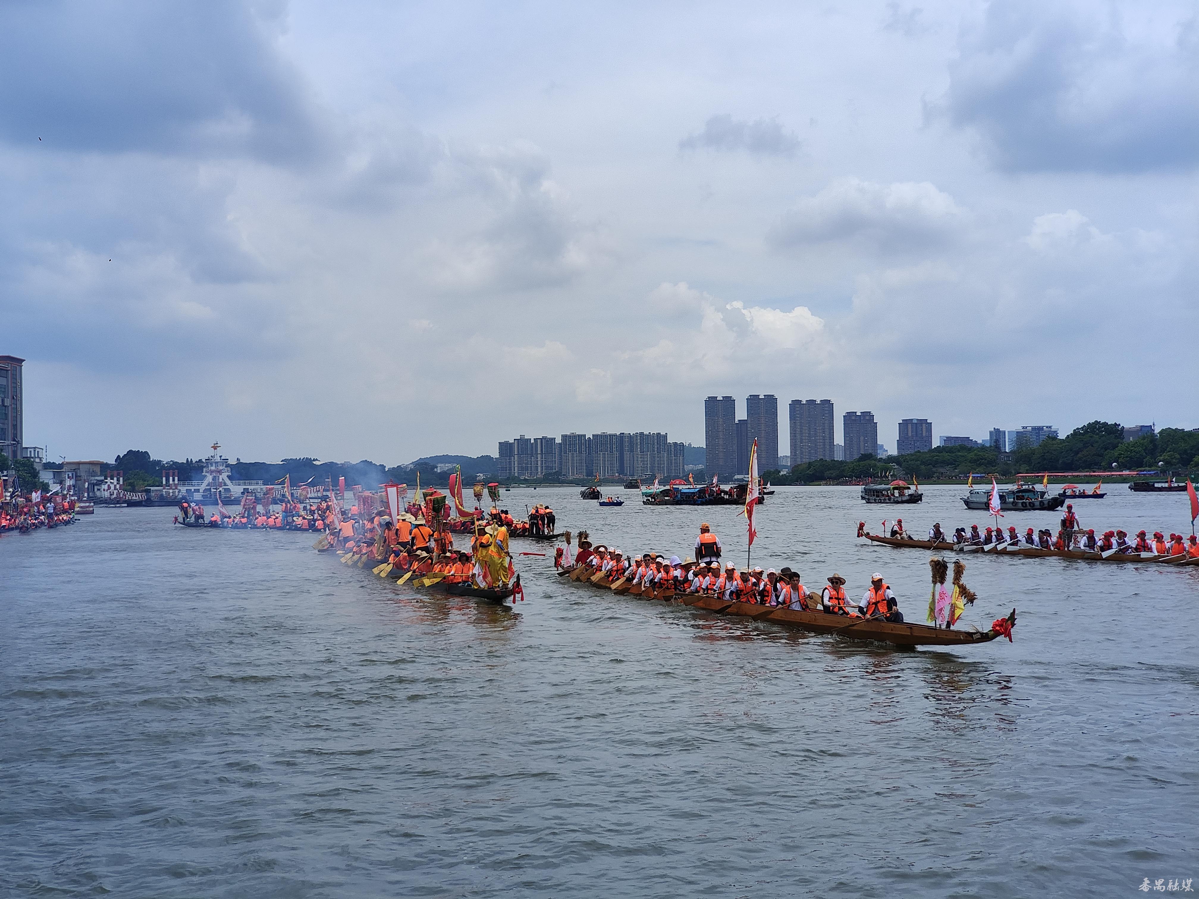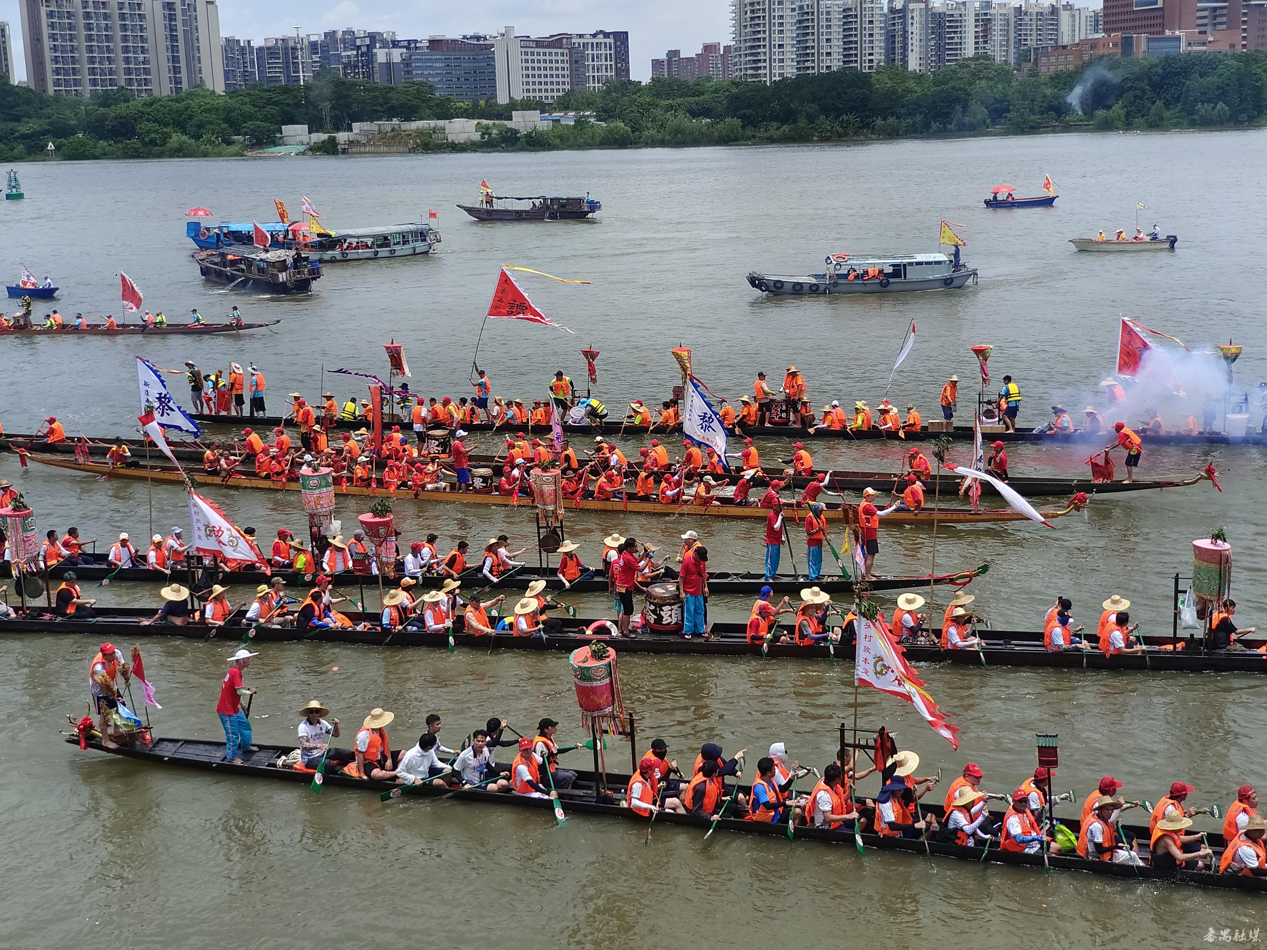 一湾珠江水,两岸龙舟情。随着端午节临近,番禺民间传统的“龙船景”陆续开锣。6月21日,阔别三年的“新造景”盛会如期而至,40多艘条龙船齐聚新造水道举行游龙趁景,吸引了沿岸数千市民争相观看,场面热闹非凡。