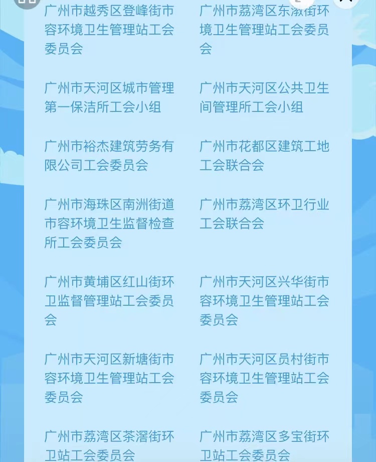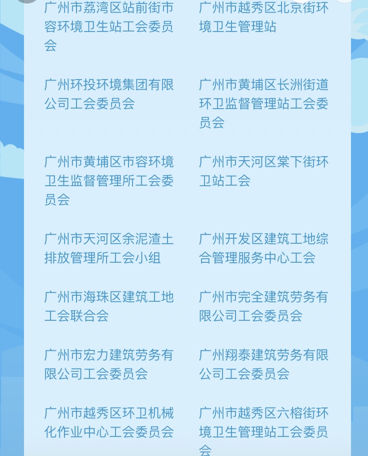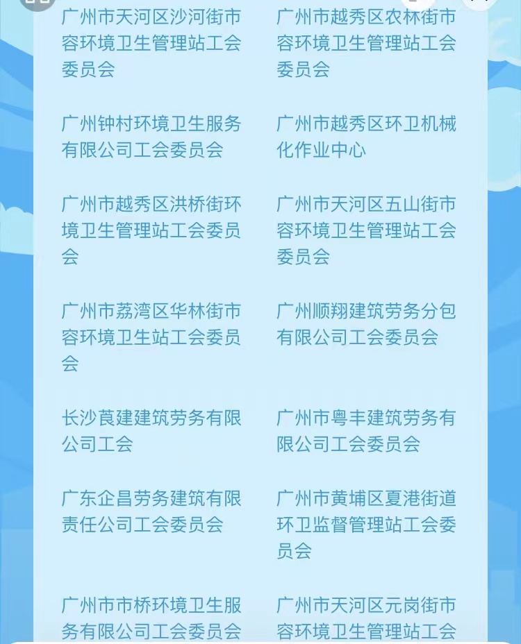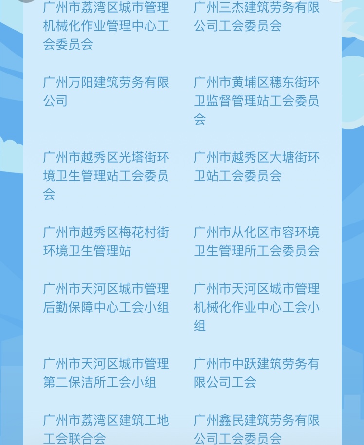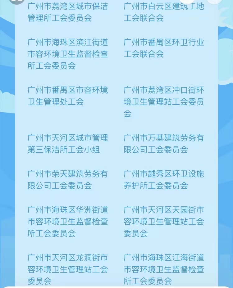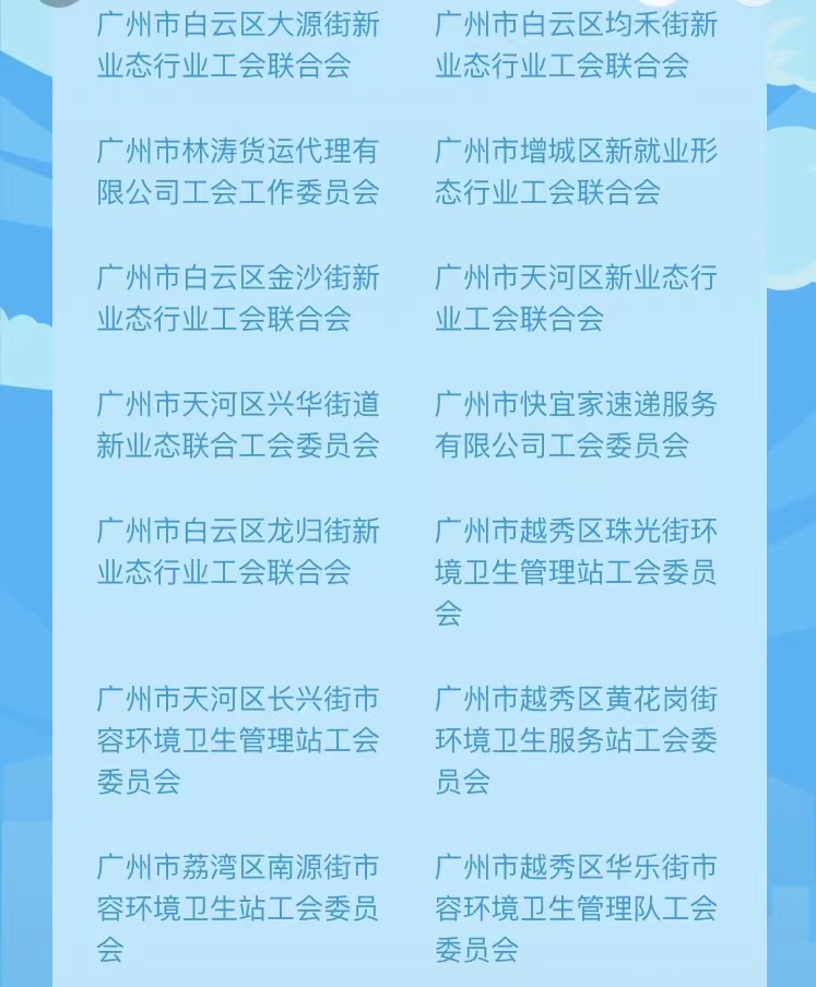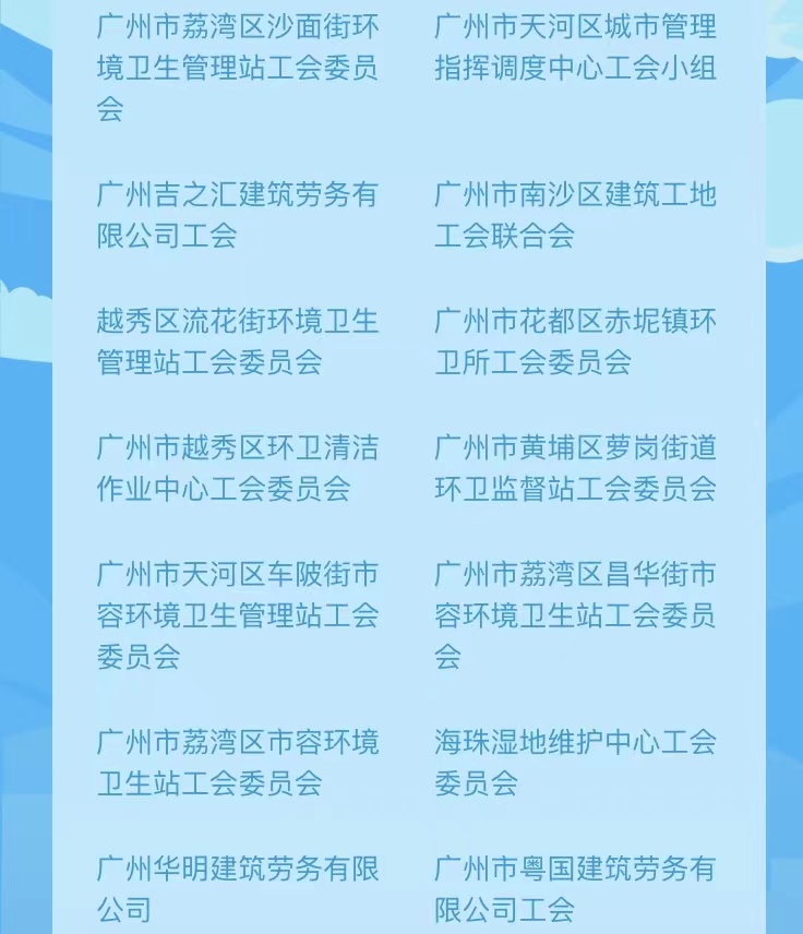 记者从活动页面了解到,广州有包括越秀区光塔街环境卫生管理站工会委员会、白云区建筑工地工会联合会、天河区新业态行业工会联合会在内的400多个工会的劳动者符合领取“清凉券”的要求。