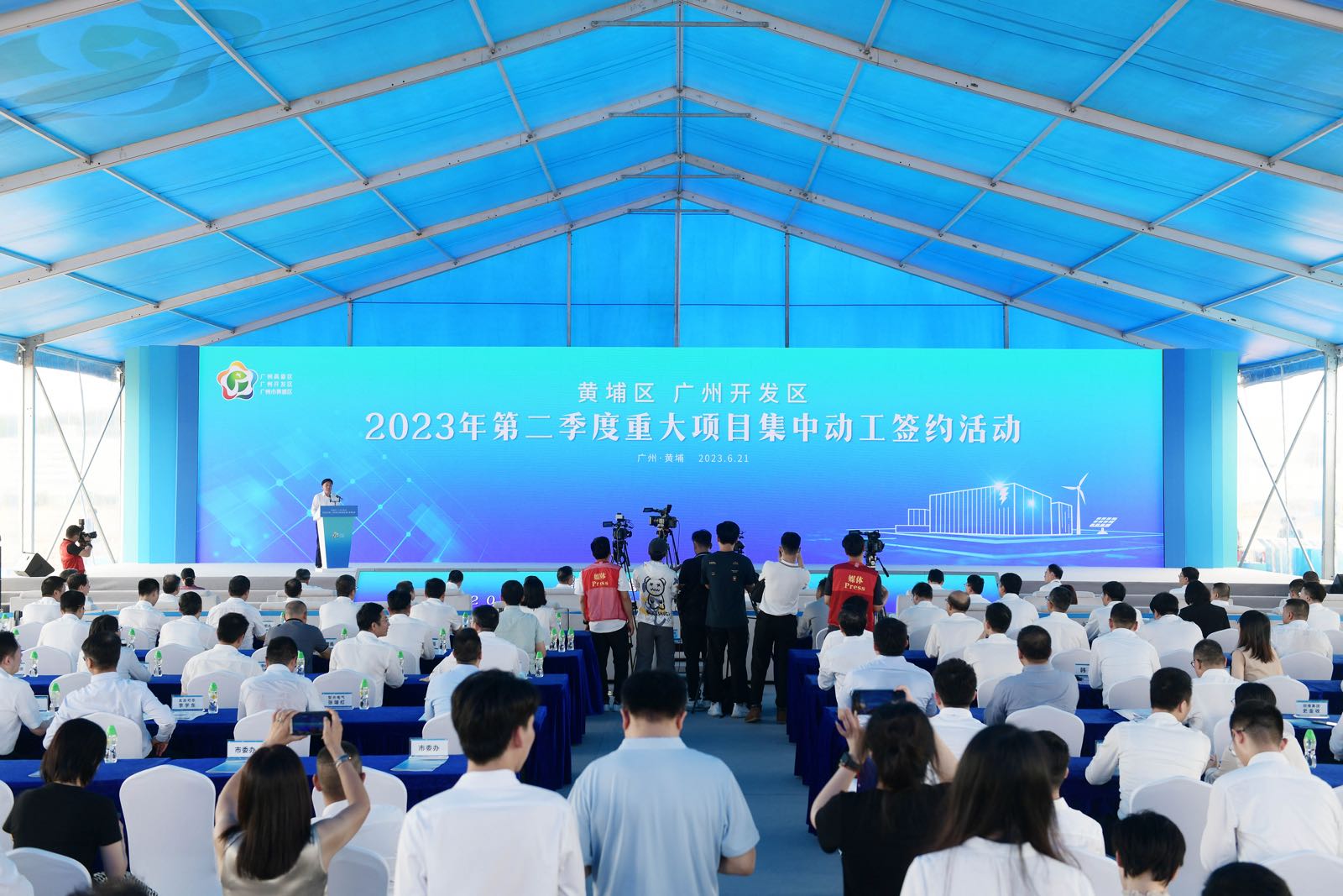 6月21日,黄埔区、广州开发区举行2023年第二季度重大项目集中动工签约活动,166个项目集中动工签约,总投资2015亿元。其中动工项目84个,总投资约902亿元,预计达产产值、营业收入约933.5亿元;签约项目82个,总投资约1113亿元,预计达产产值、营业收入约1539亿元。