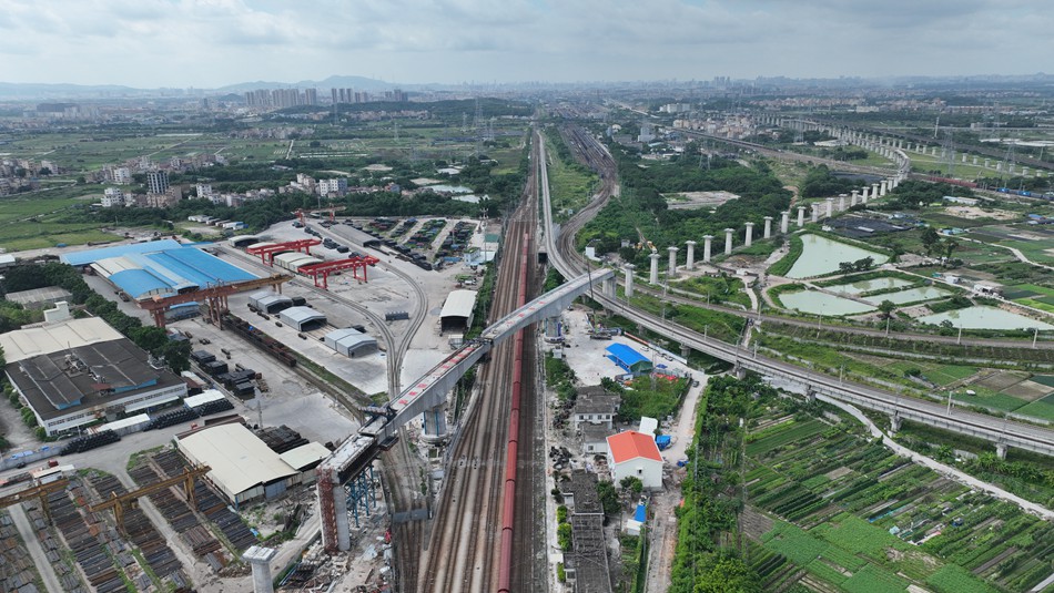 广州白云站枢纽建设再传捷报。6月21日凌晨1时,由中国铁路广州局集团建设、中铁二十五局施工的广州白云站枢纽京广高铁下行联络线1号特大桥上,近万吨重的双幅转体梁经过50分钟同向顺时针旋转,实现精准对接,成功横跨南北铁路大动脉京广铁路,为广州白云站年底具备开通条件奠定基础。